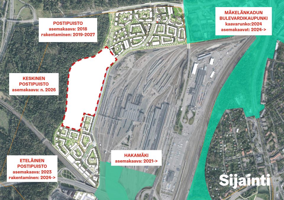 Pasilan pohjoisosassa sijaitsevan Keskisen Postipuiston suunnittelu alkaa. Alueelle tulee koteja noin 3 000 asukkaalle sekä kaupallisia ja julkisia palveluita. Kaupunkilaiset kutsutaan työpajaan suunnittelemaan Keskisen Postipuiston tulevaisuutta.