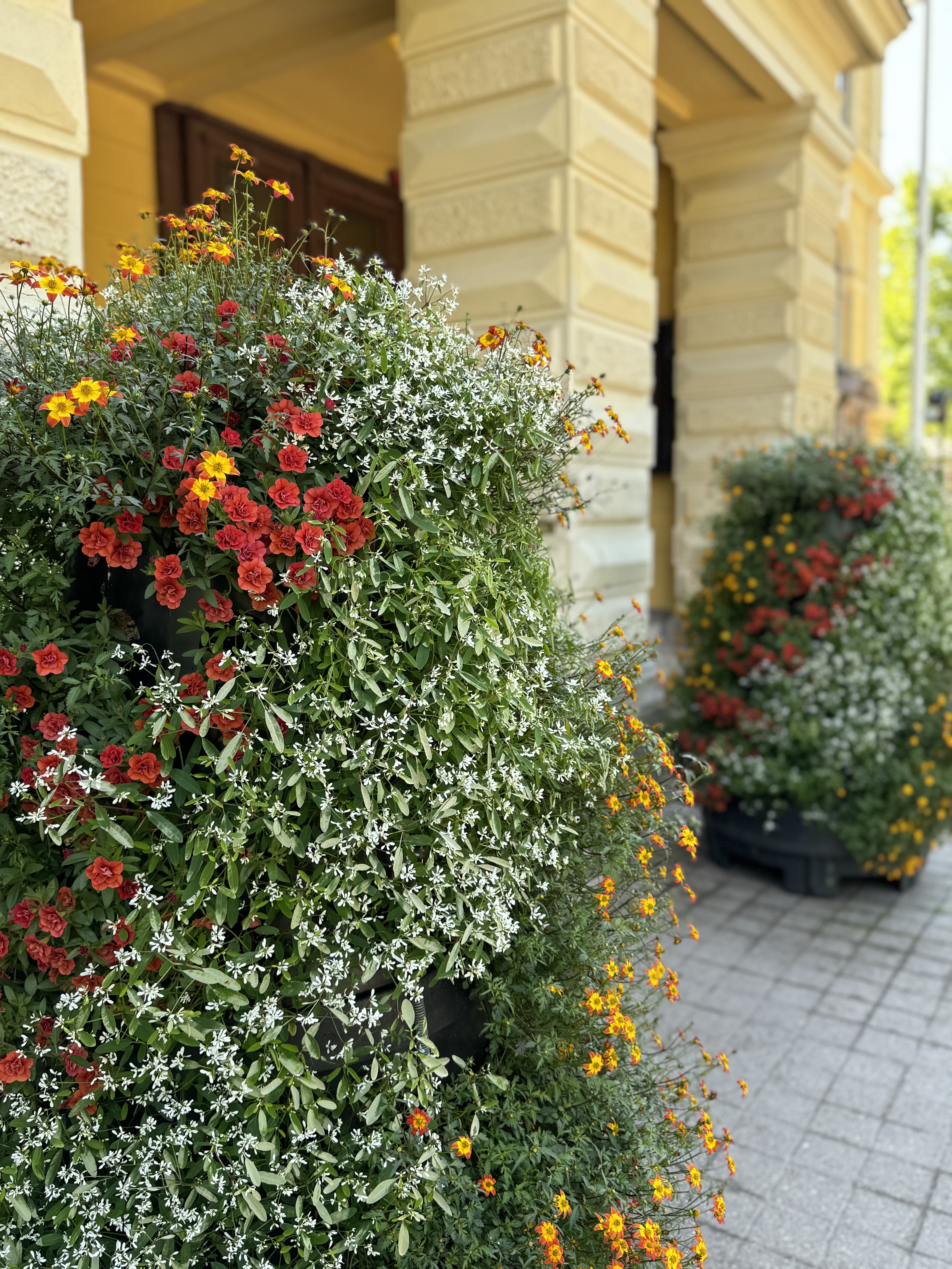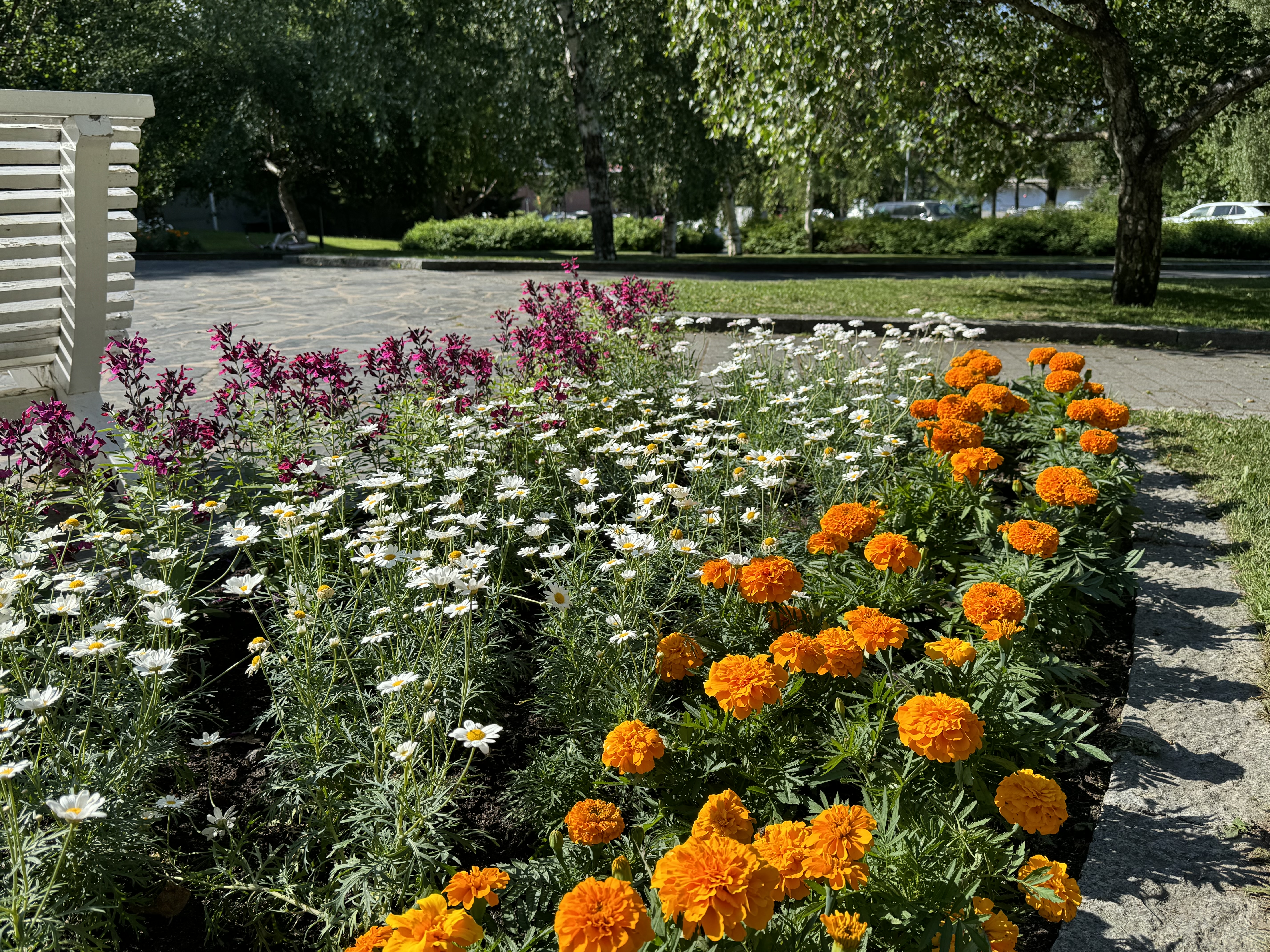 Sommarblommorna gläder stadens invånare och besökare under cirka fyra månader. Sommarblommorna blommar i nyanser av varma orangea och vinröda färger, med violett, gult och vitt som accentfärger.