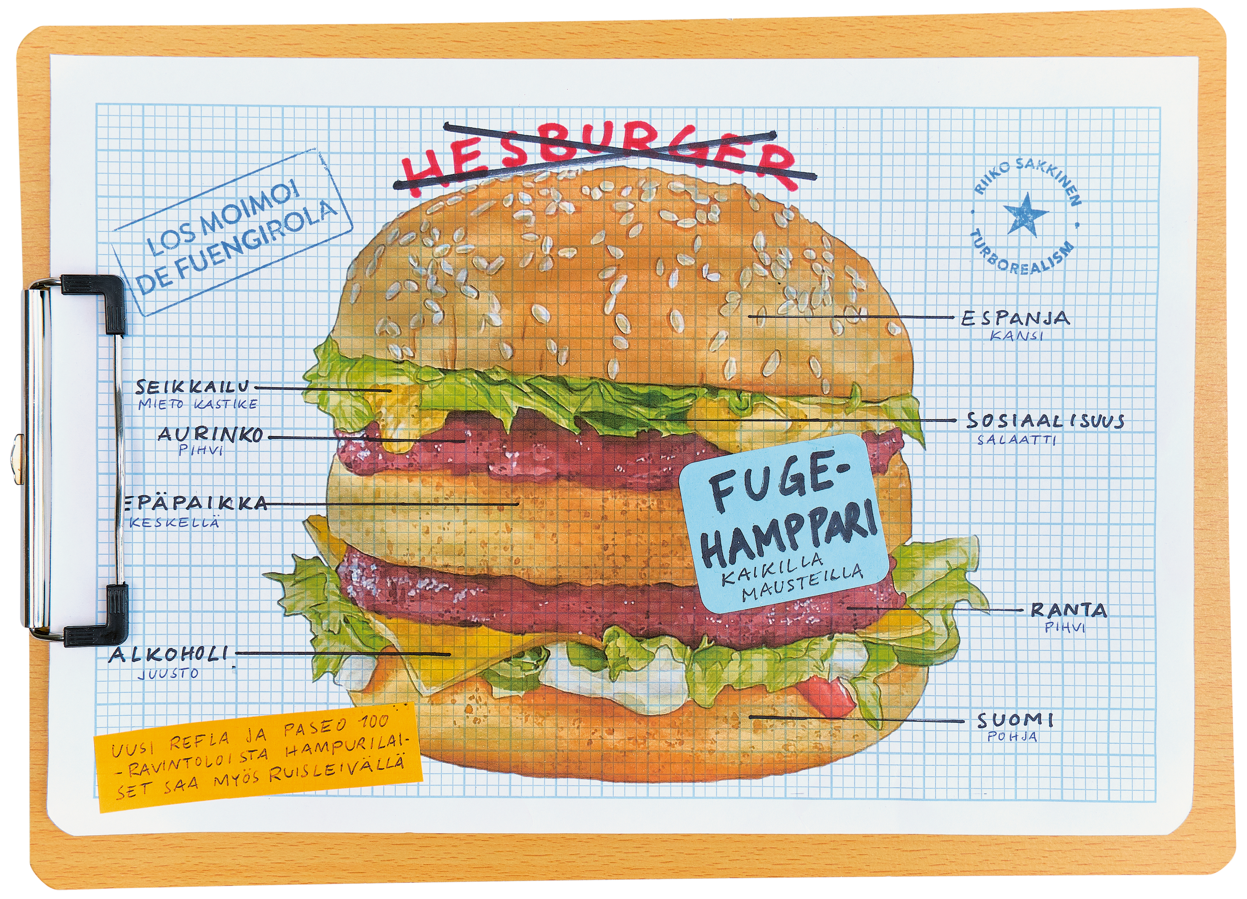 Taiteilijan mukaan ”Fuge” on utopia ja ikään kuin parempi versio suomalaisuudesta ja Suomesta. Kirjan ja näyttelyn nimi viittaa paikallisten espanjalaisten suomalaisille antamaan nimeen ”los moimoi”, joka puolestaan viittaa suomalaisten tapaan tervehtiä toisiaan. Sakkisen mukaan paikallisten suomalaisten haastatteluissa korostui se, että monet olivat tulleet Fuengirolaan nimenomaan pakoon jotain: Suomen säätä ja ilmastoa, velkoja tai muita talousasioita tai jopa poliisia. Kotimaasta muistuttavat muun muassa Suomesta tuodut elintarvikkeet, suomalaisten omat ravintolat ja vaikkapa pesäpallo.