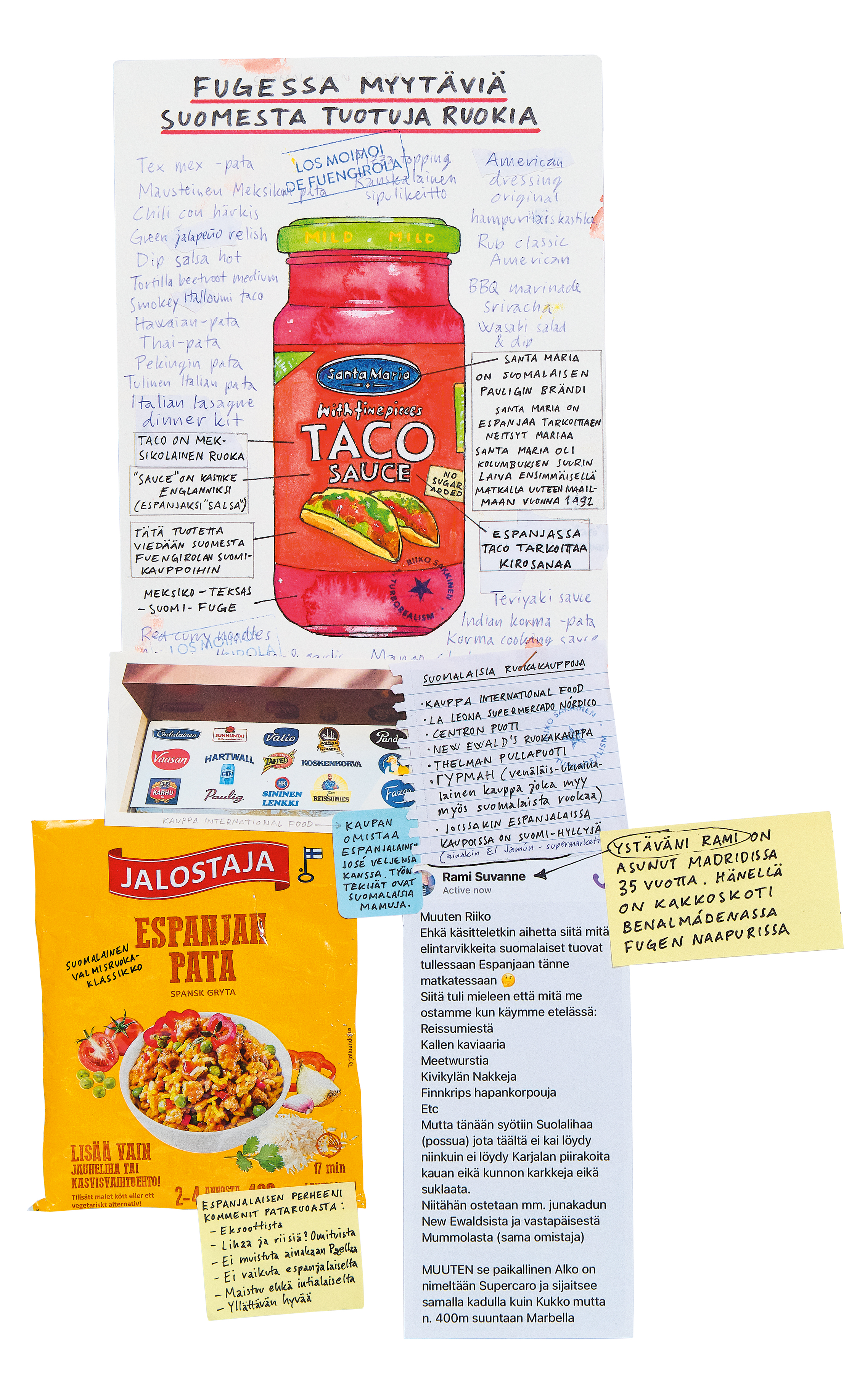 Los moimoi de Fuengirola -kirja liittyy näyttely- ja tutkimusprojektiin, jossa taiteilija Riiko Sakkinen (s. 1976) käsittelee suomalaista identiteettiä. Espanjan Aurinkorannikolla Fuengirolassa asuu noin 30 000 suomalaisen yhteisö, jonka jäsenet eivät välitä opiskella paikallista kieltä tai tapoja. He elävät omaa, puolieristäytynyttä elämäänsä ja viettävät kotoisasti aikaa suomalaisissa baareissa ja tukeutuvat omiin suomalaisiin kauppoihinsa, palveluihinsa ja instituutioihinsa. Fuengirolan hallinto onkin nimennyt kuntansa ”Suomen eteläisimmäksi kaupungiksi”.
