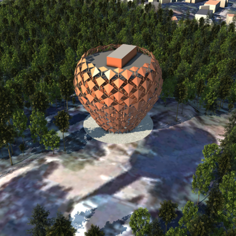 “Käpyteemainen vesitorni ympäristötaiteen omaisella muodollaan kertoo paikan metsähengestä ja ilahduttaa virkistysalueen kävijöitä sekä tornia kauempaakin tarkastelevia”, kertoo FCG:n kaupunkikehitysjohtaja, arkkitehti SAFA Arja Sippola, jonka alkuperäinen idea valittu vesitorniteema oli. Muut ehdotukset olivat Timantti ja Metsä.