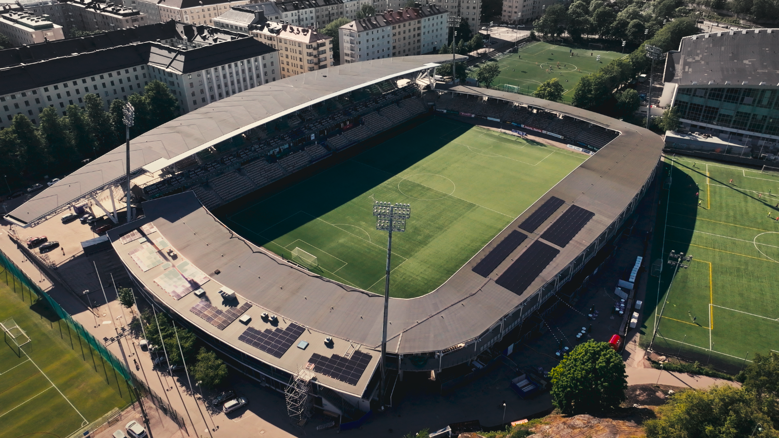 HJK:n aurinkovoimalan rakennustyöt on saatu päätökseen. Suomen ensimmäinen jalkapallostadionin katolle rakennettu aurinkovoimala on kytketty sähköverkkoon ja alkaa tuottaa aurinkosähköä tiistaista alkaen. Tuottoista käyttöikää voimalalla odotetaan olevan edessään jopa 40 vuotta.