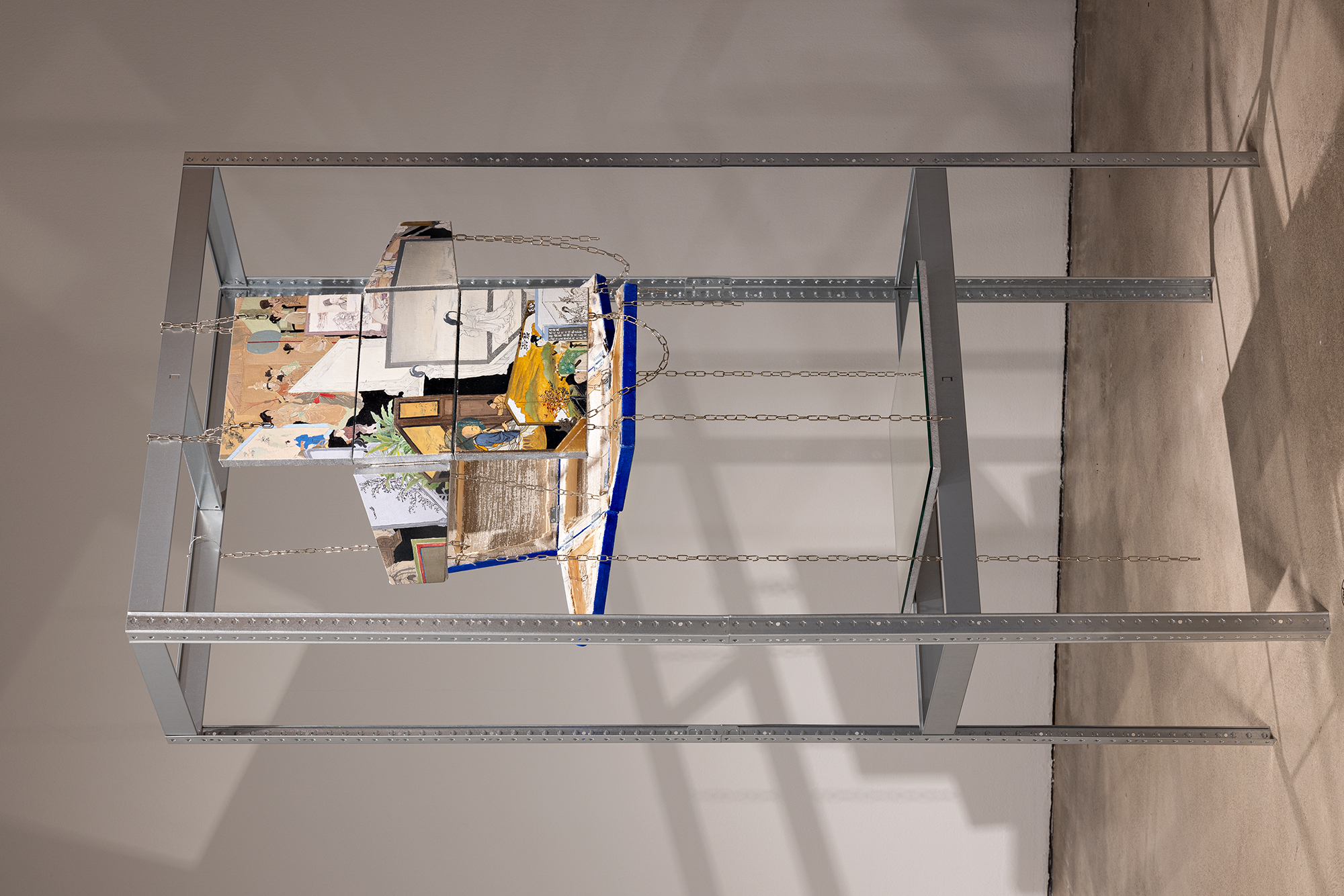 Genom att använda medel från traditionellt kinesiskt bildskapande utforskas landskapskonceptet som en yta genom objekten.