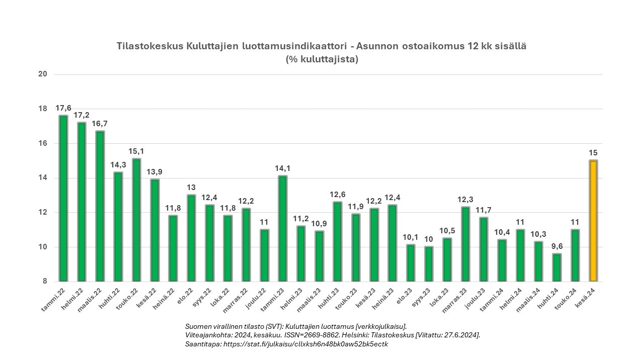 Viime viikolla julkistettu Tilastokeskuksen kuluttajien luottamus ja asunnon ostoaikomus 12 kk:n sisällä indeksit ovat nousseet selvästi nyt jo touko- ja kesäkuussa. ”Tämä on selvä merkki siitä, että nyt alkaa tapahtua asuntokaupassa. Mihinkään hyökyaaltoon ei kuitenkaan kannata uskoa vaan siihen, että kauppa alkaa käydä tasaisemmin ja hinnat eivät enää laske”, jatkaa SKVL:n Mannerberg.