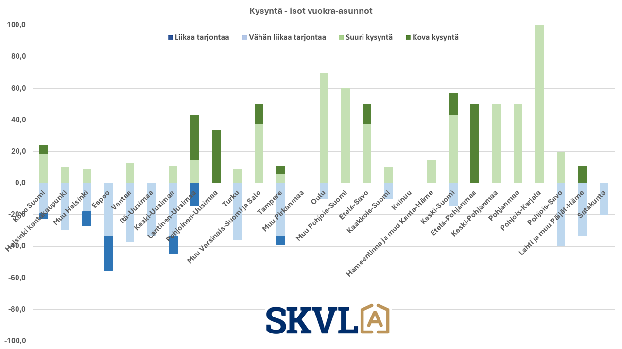Vuokra-asuntomarkkinoilla ei ole suuria muutoksia, mutta eräissä kaupungeissa opiskelijat etsivät jo vähenevästä tarjonnasta hyviä vaihtoehtoja. Opiskelupaikkojen selvittyä pienten vuokra-asuntojen kysyntä on parhaimmillaan ja yliopistokaupungeissa kysyntä on vahvaa. Iso tarjonta useimmissa pitää vuokratason ennallaan niin pienissä kuin suuremmissakin asunnoissa. Suuremmat vuokra-asunnot ovat halutumpia ja niiden tarjontaa on vähemmän.