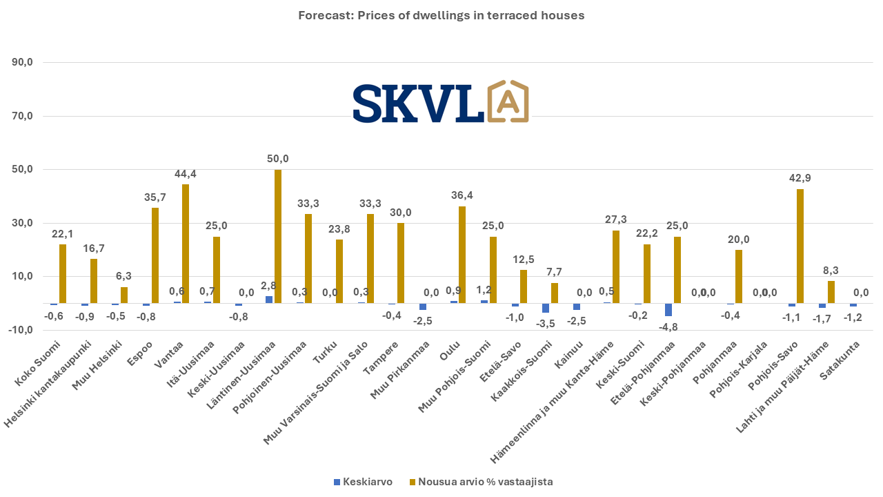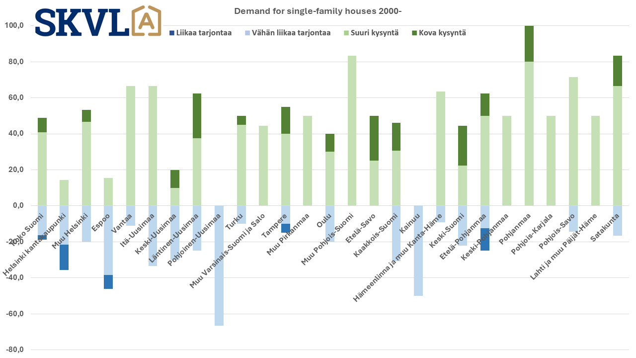 Detached houses built in the 2000s during the summer season and older houses that have been renovated are most in demand. In terraced houses, newer ones are also the most interesting, and the long-standing trend of having one's own yard is still popular. The purchase of a house in need of renovation is hindered, especially in smaller towns, by the low collateral value in the bank's loan decisions. The strict stance of some banks on older properties suitable as collateral clearly slows down housing sales in smaller localities, even though market prices are low.