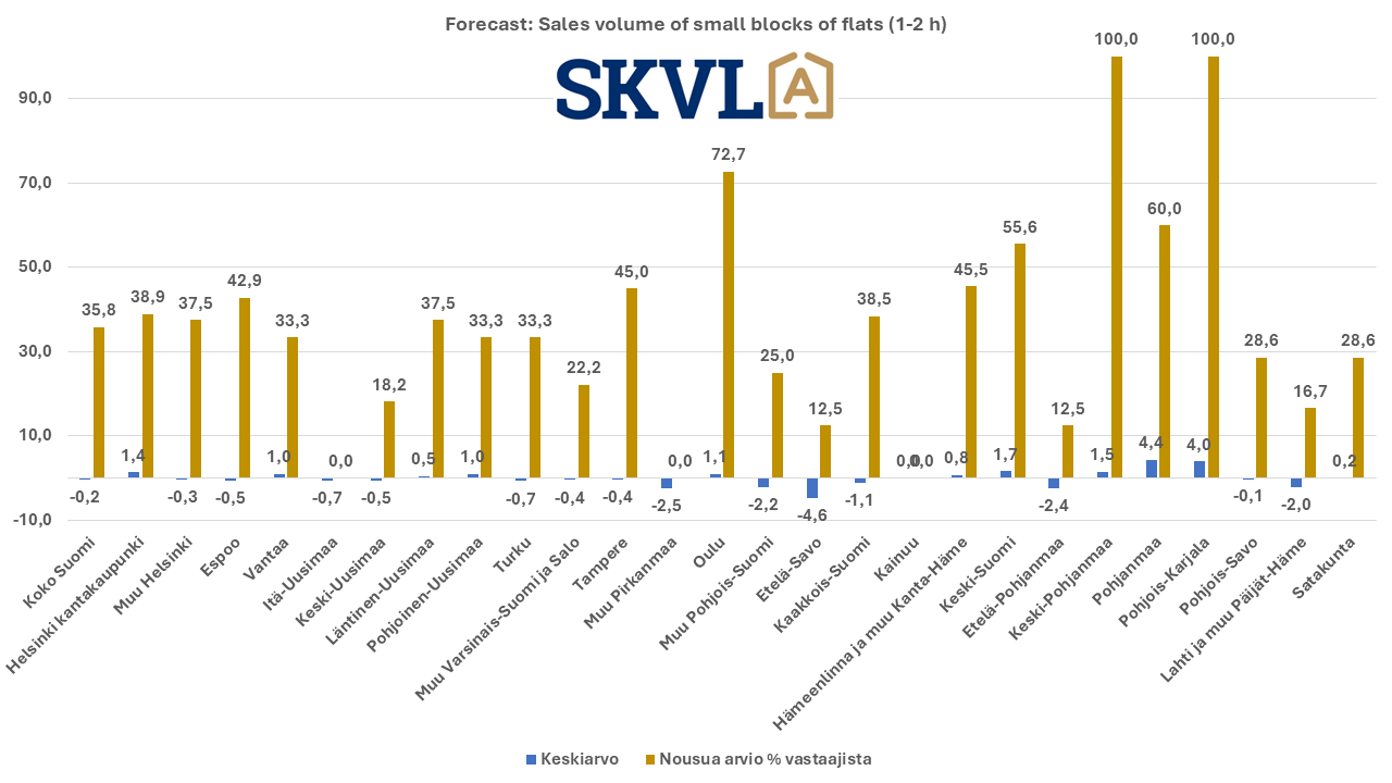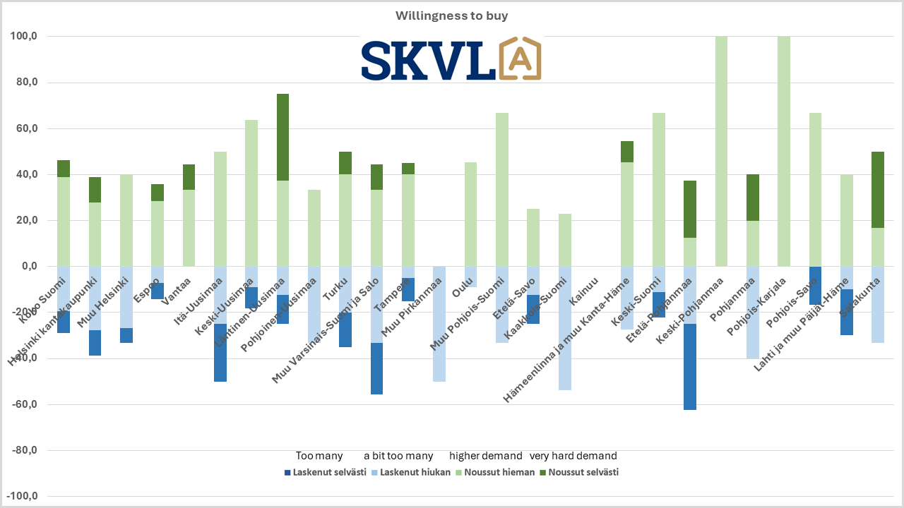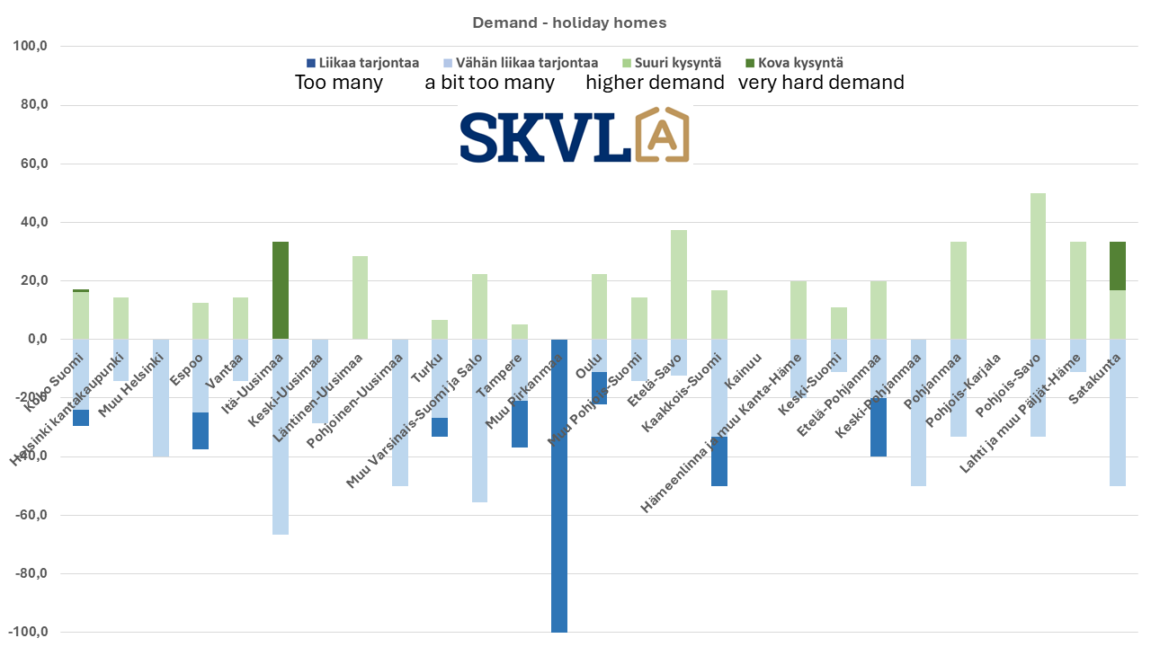 SKVL's sellers' willingness to sell indicator has risen strongly and the buyers' willingness to buy indicator has remained at a good level but did not increase clearly from the previous quarter. This situation has led to a marked increase in supply. "Buyers have a lot of choice, which in part makes trading somewhat slower and options are weighed for a long time," comments Mannerberg. It has been a quiet spring in some parts of Finland, but most brokers report some improvement in demand. With supply currently exceeding demand, no major upward or downward movements in prices are to be expected.