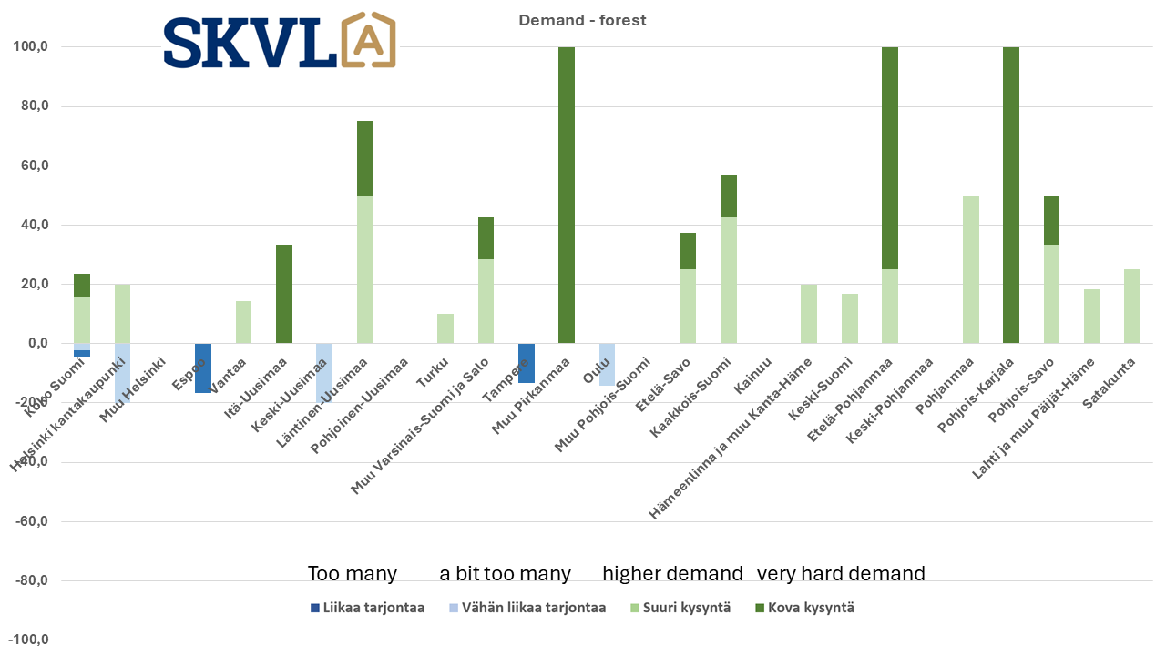 The demand for forests is high. The price of forest has levelled off, which has increased the interest of private buyers. In addition, the price of wood has remained high. Many investors also seek to diversify their investments and buy forests.
