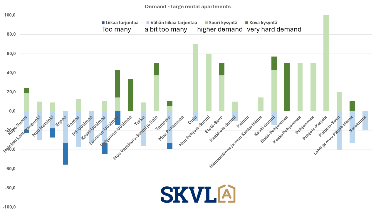 There are no major changes in the rental housing market, but in some cities, students are already looking for good alternatives due to the declining supply. Once student places have been cleared, the demand for small rental apartments is at its best, and demand is strong in university towns. The large supply in most places keeps the rent level unchanged in both small and large apartments. Larger rental apartments are more sought after and their supply is less.