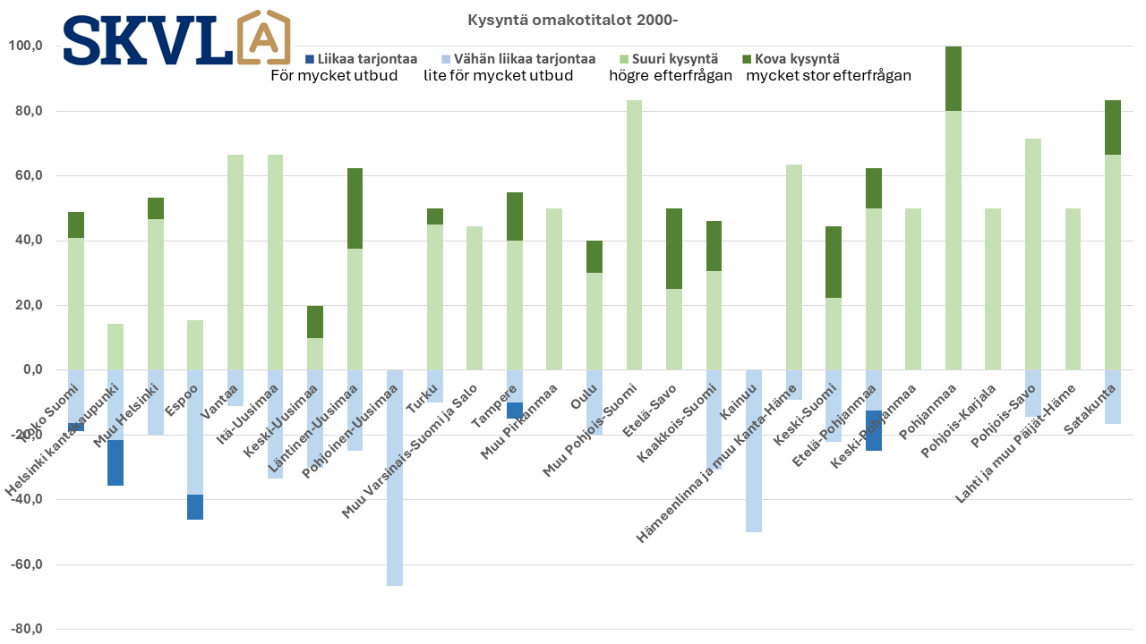 Egnahemshus byggda på 2000-talet under sommarsäsongen och äldre hus som har renoverats är mest efterfrågade. I radhus är också nyare hus de mest intressanta, och den långvariga trenden med en egen trädgård är fortfarande populär. Anskaffningen av ett hus i behov av renovering försvåras, särskilt på mindre orter, av det låga säkerhetsvärdet i bankens lånebeslut. En del bankers strikta hållning till äldre fastigheter som duger som säkerhet bromsar klart upp bostadsförsäljningen på mindre orter, även om marknadspriserna är låga.
