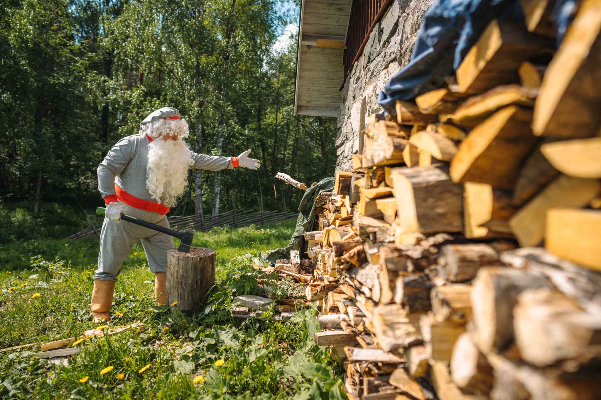Joulupukki on vaihtanut kesäloman ajaksi punaisen nuttunsa vaaleanharmaisiin vaatteisiin ja kerää Kolin kansallispuiston kupeessa voimia viiden kuukauden päässä odottavaan joulusesonkiin.