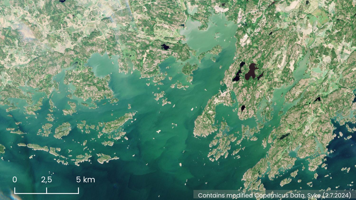 The cyanobacterial maps presented on the websites MarineFinland.fi and Waterinfo.fi combine the observations reported to the Järvi-meriwiki and from the beaches of the City of Helsinki, as well as the observations based on satellite interpretations made by Syke during the last three days.