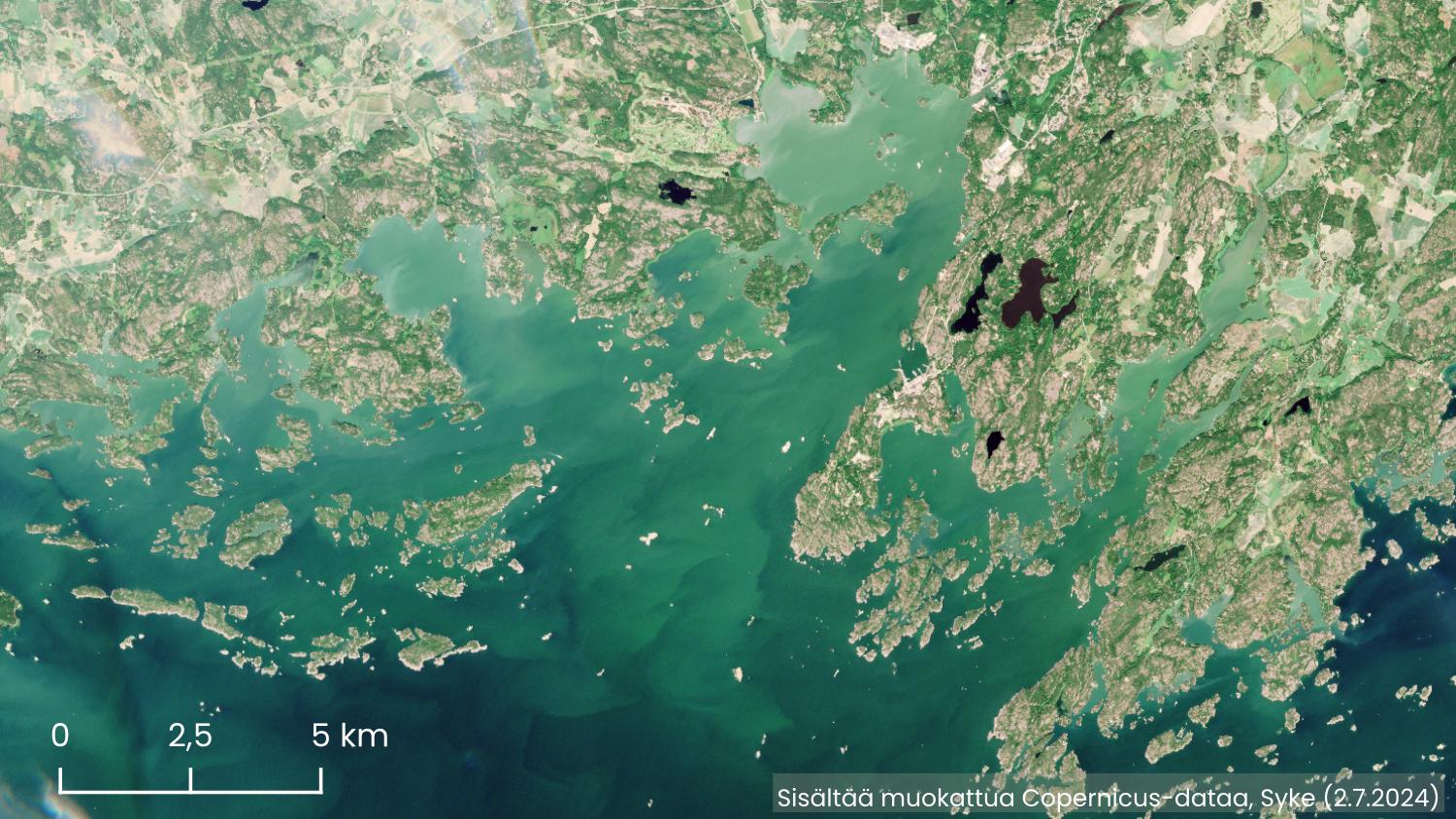 Rannikkoalueen sinilevähavaintojen määrässä ei ole juuri tapahtunut muutosta viime viikkoon nähden. Sinilevää on havaittu 19:llä valtakunnallisen sinileväseurannan havaintopaikoista, joista runsaasti levää havaittiin kahdessa ja hieman levää 17:ssä havaintopaikassa. Sinilevää havaittiin lähinnä Uudenmaan ja Varsinais-Suomen rannikolla, ja viime päivinä sinilevää on havaittu erityisesti Hangon länsipuolella ja Upinniemenselän alueella. Rannikon sulkeutuneilla ja matalilla alueilla vesi on tällä hetkellä sameaa, sillä kova tuuli on sekoittanut vettä ja nostattanut pohja-ainesta vesimassaan. Tiistain satelliittikuvassa erottuu Upinniemenselän rannikkoalueella veteen sekoittuneena sekä pohja-ainesta että sinilevää.