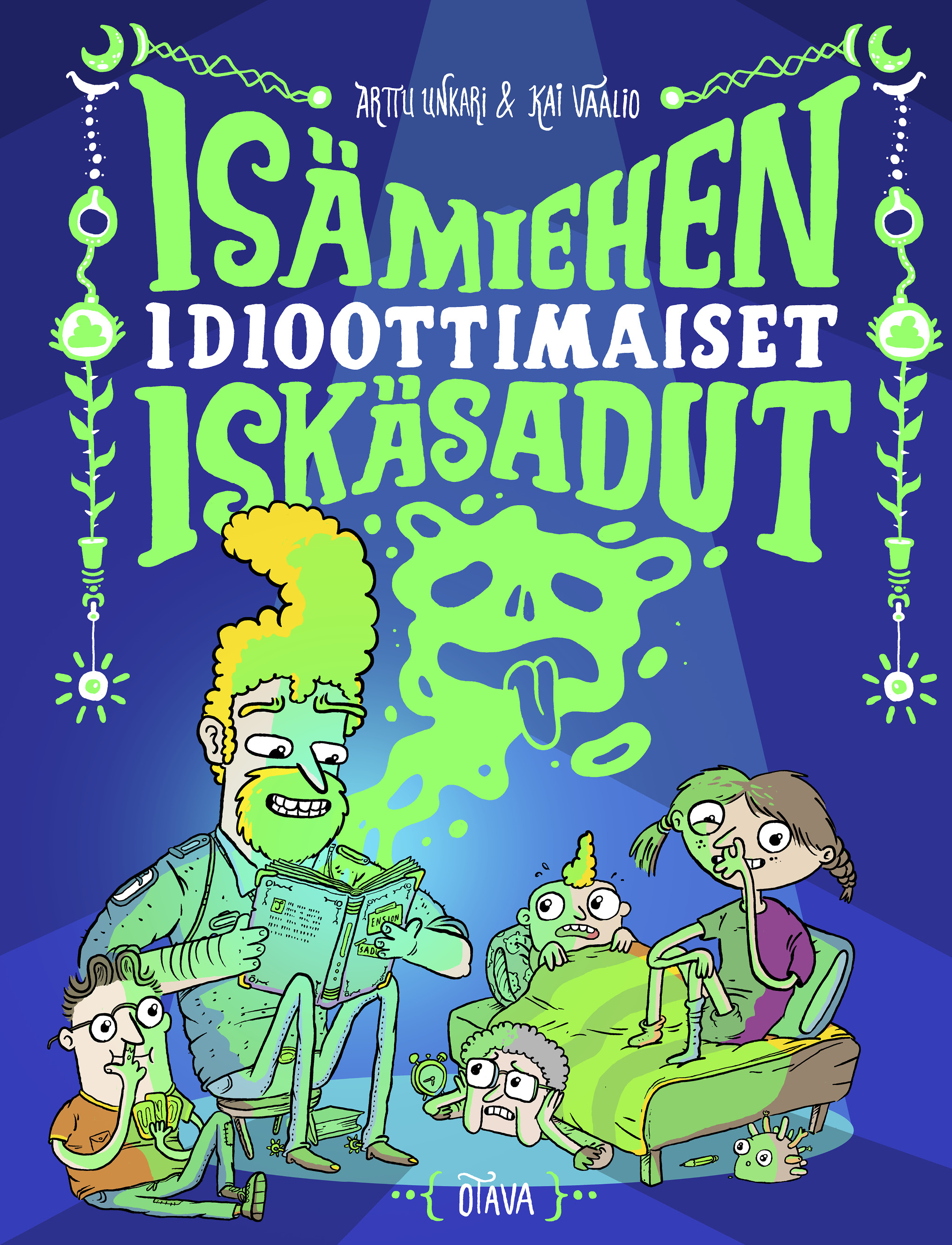 Arttu Unkari on helsinkiläinen alakoulun opettaja ja lastenkirjailija. Kai Vaalio on lahtelainen graafikko, kuvittaja, sarjakuvataiteilija ja matkakirjailija.