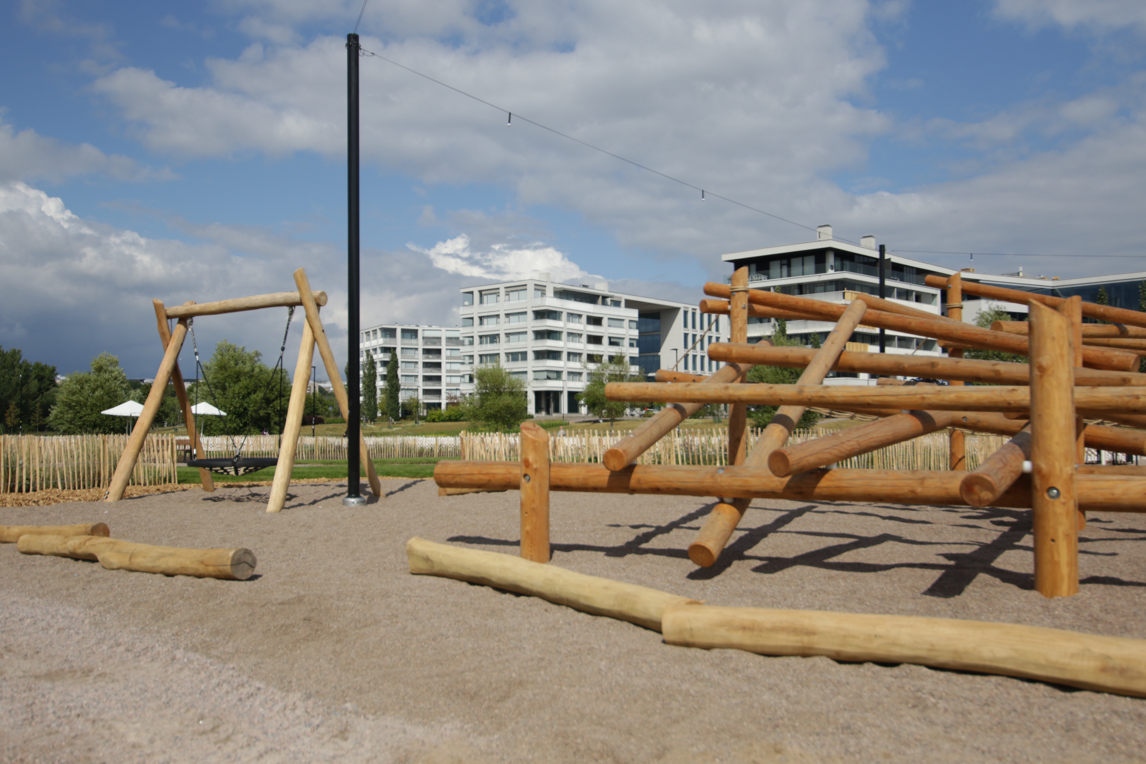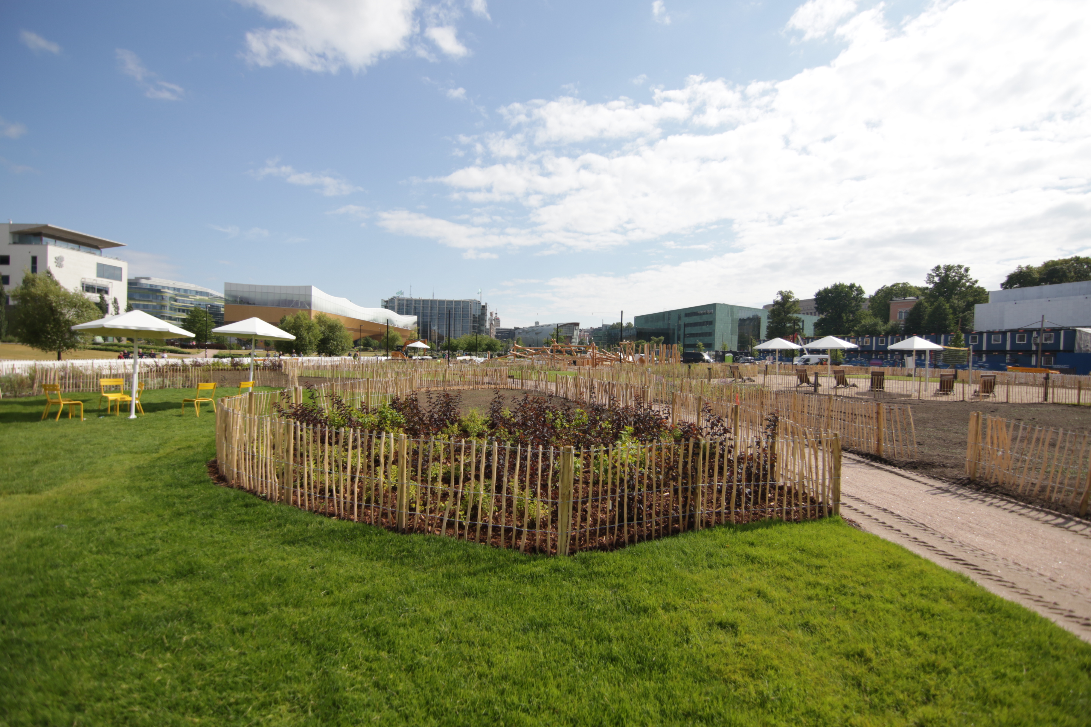 Monipuolinen puistoalue saa kylkeensä myös tanssi- ja esiintymiskäyttöön tarkoitetun lavan, jonka on määrä rakentua heinäkuun loppuun mennessä. Lisäksi alueella viimeistellään kalusteasennuksia.