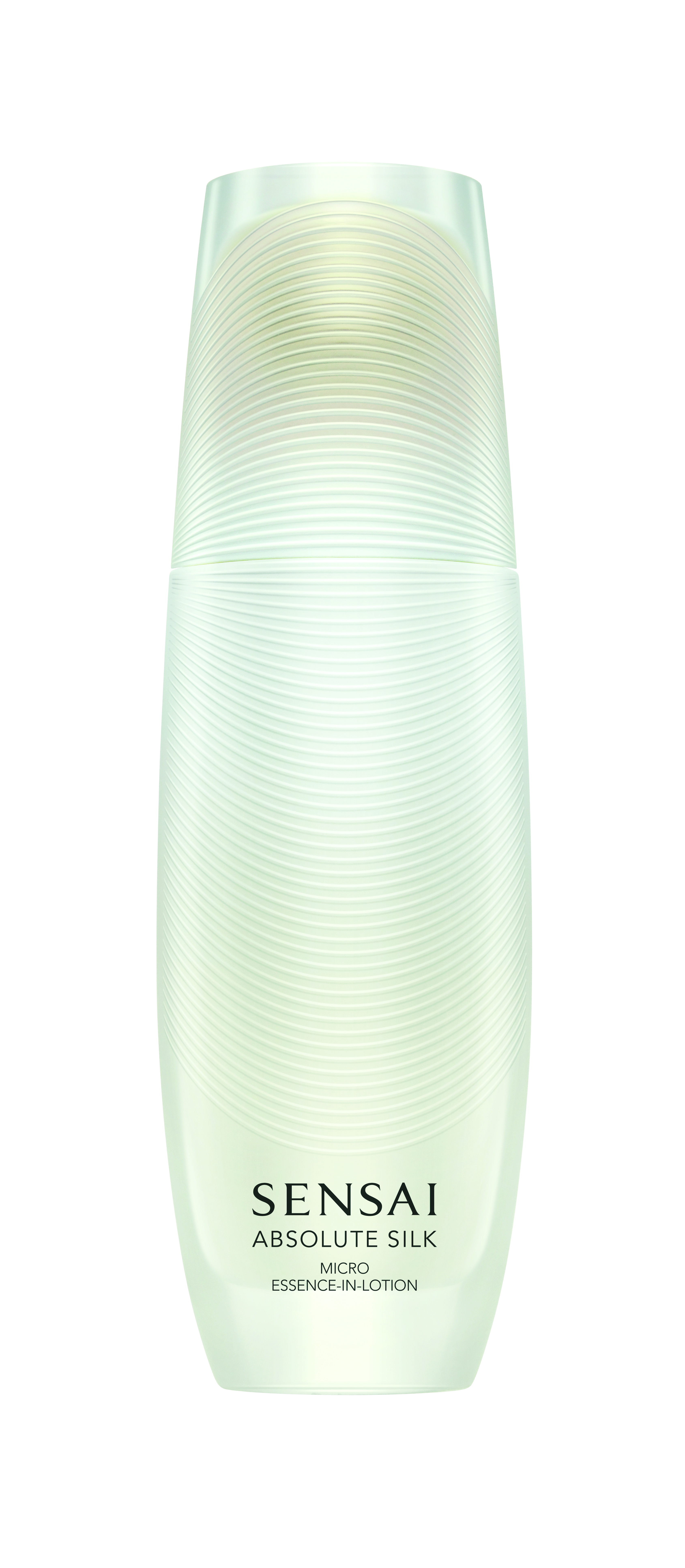 SENSAI täydentää pidettyjen hoitovesien valikoimaa uudella ABSOLUTE SILK MICRO ESSENCE-IN-LOTION-hoitovedellä. Taidokas yhdistelmä vesimäistä raikkautta ja öljyjen runsautta tarjoaa kuluttajalle elämyksellisen anti-ageing-ihonhoidon kokemuksen, joka ulottuu ihon pintaa syvemmälle. Noin 7,9 biljoonaa mikronisoitua öljypartikkelia per pisara sisältävä hoitovesi asettuu iholle asteittain Micro Lipo Oil Carrier -koostumuksen ansiosta.