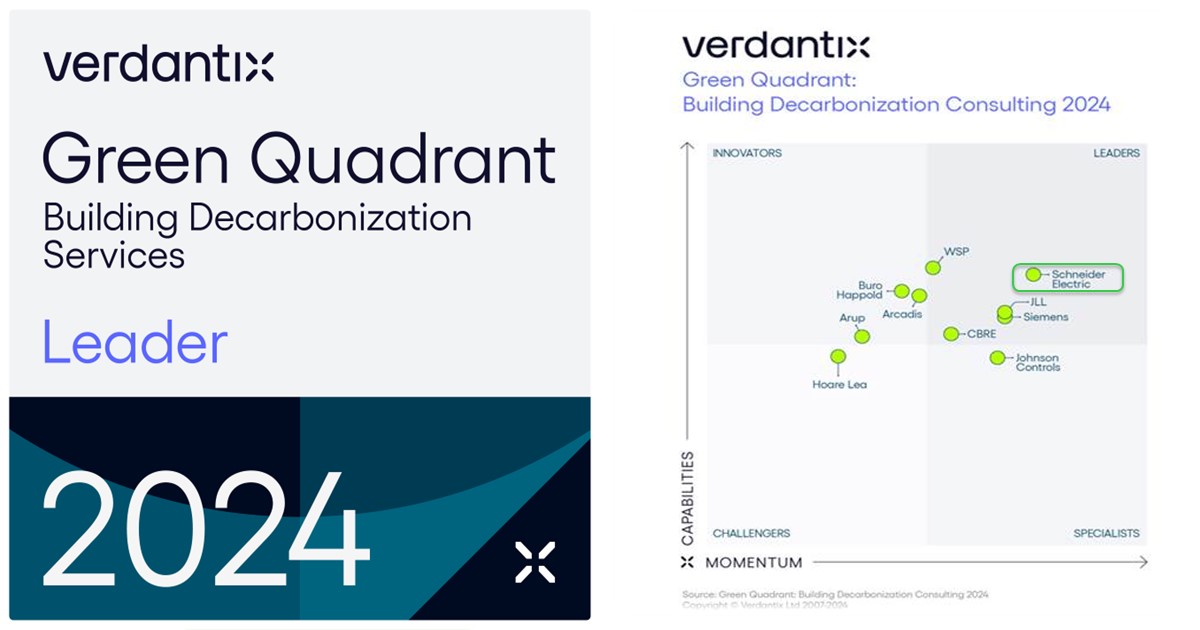 Riippumaton tutkimusyhtiö Verdantix on vastajulkaistussa raportissaan nimennyt energianhallinnan ja automaation asiantuntijan Schneider Electricin rakennusalan johtavaksi konsulttitaloksi. Verdantixin Green Quadrant: Building Decarbonization Consulting 2024 -raportti on yhtiön ensimmäinen julkaisu, jossa käsitellään mahdollisuuksia vähentää rakennussektorin hiilidioksidipäästöjä energianhallintapalveluiden avulla. Rakennussektorin osuus maailman energiaan liittyvistä päästöistä on 37 prosenttia suorat ja epäsuorat päästöt mukaan lukien.
