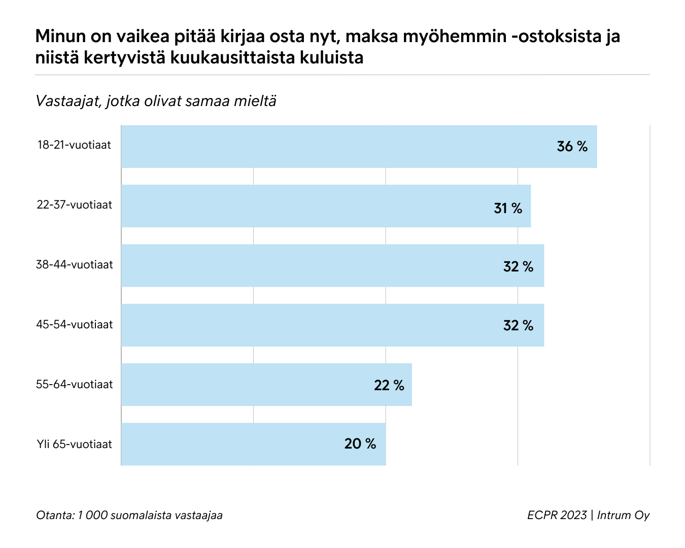 Luotonhallintayhtiö Intrumin tutkimuksen mukaan nuoret aikuiset kokevat muita ikäryhmiä vaikeammaksi pitää kirjaa osta nyt, maksa myöhemmin -ostoksistaan ja niistä kertyvistä kuukausittaisista kuluista. Digitaaliset ratkaisut ja maksutavat tekevät ostamisesta yhä helpompaa ja sosiaalinen media lisää paineita kuluttamiseen.