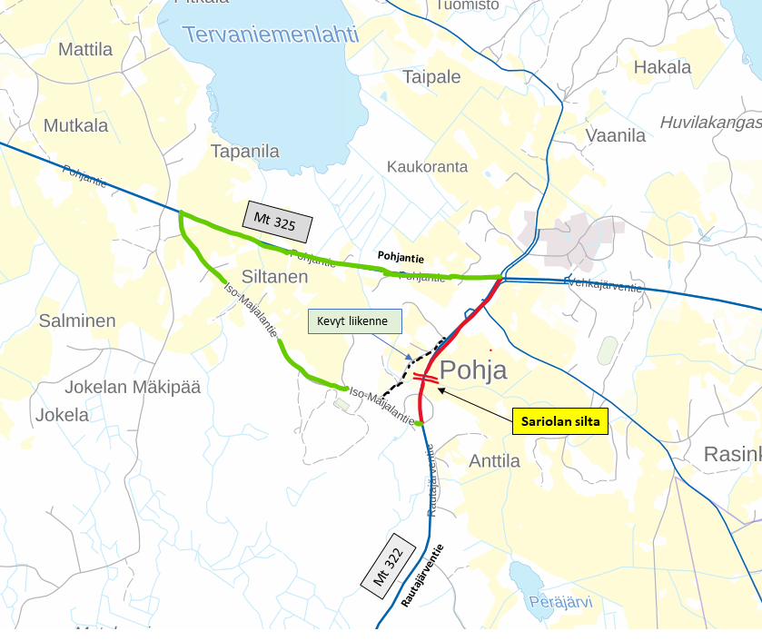 Pohjassa maantien 322 alittava, vuonna 1984 rakennettu teräsputkisilta korvataan uudella teräsputkella. Siltapaikka on 550 m mt 325 (Pohjantie) liittymästä etelään.