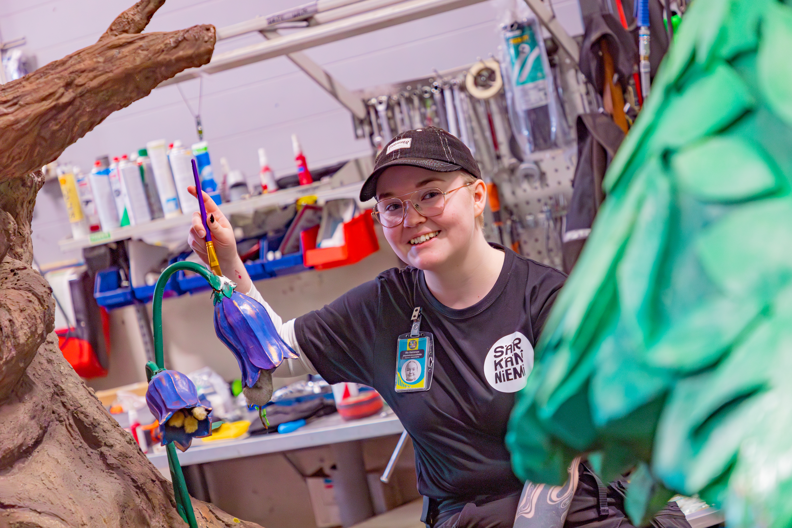 ”Pena Puun kunnostaminen oli haastava projekti. Puu sisältää paljon liikkuvia osia, joten oli opettavaista ja mielenkiintoista päästä ratkomaan mekaanisia ongelmia. Näiden ongelmien ratkomiseen saimme onneksi apua Särkänniemen huoltotiimiltä. Kaikista mukavinta koko projektissa oli maalata erilaisia yksityiskohtia, kuten sieniä”, kertoo Särkänniemen IT-osastolla järjestelmäasiantuntijana työskentelevä Iita Herranen.