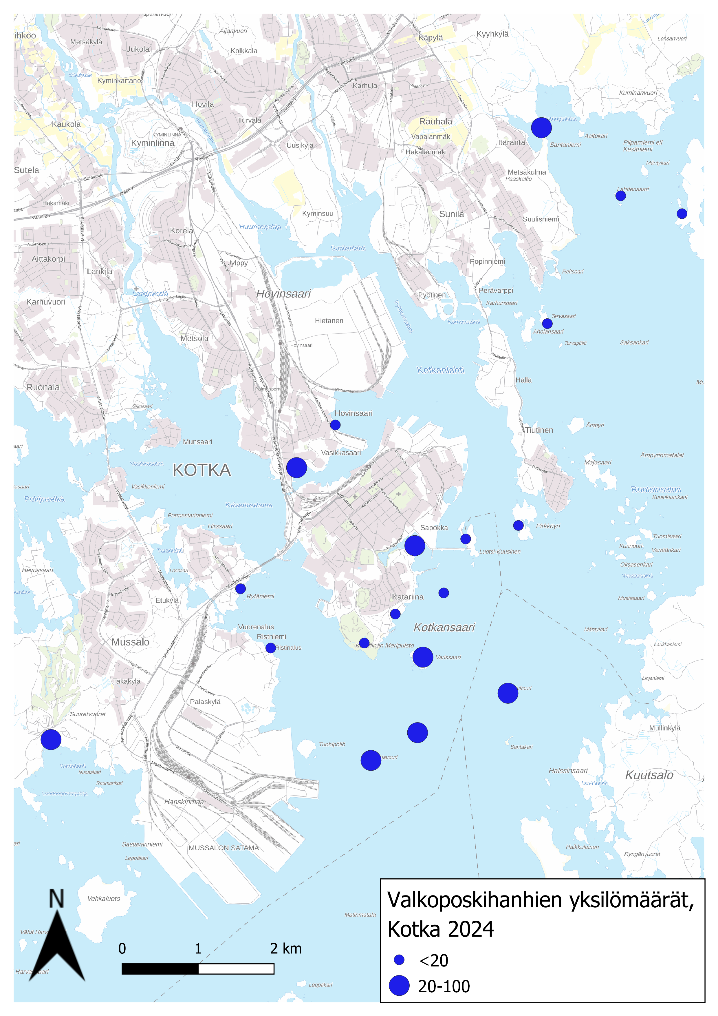 Valkoposkihanhien yksilömäärät Kotkan seudulla 2024. Kuva: Syke