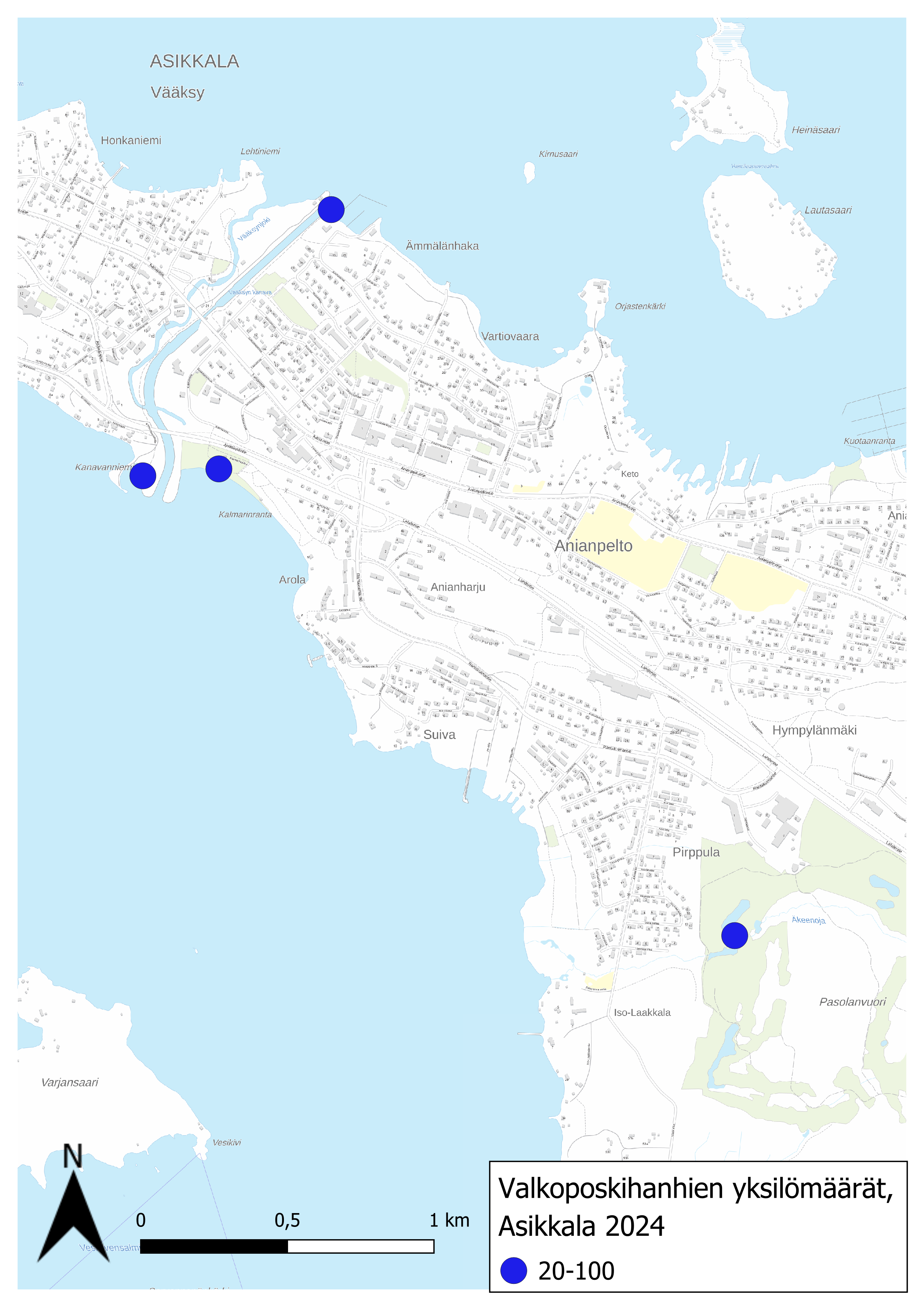 Valkoposkihanhien yksilömäärät Asikkalan seudulla 2024. Kuva: Syke