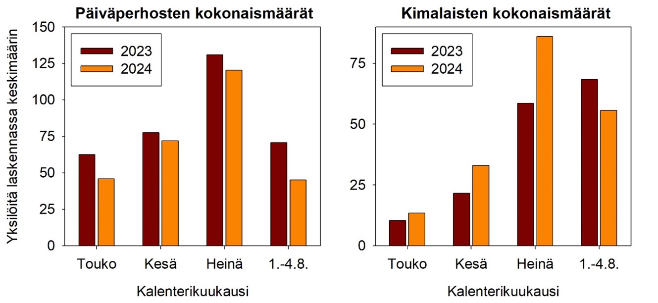 Suomen ympäristökeskuksen (Syke) laatiman, 4.8. mennessä tallennettuihin havaintoaineistoihin pohjautuvan katsauksen perusteella kuluva pölyttäjäkesä on ollut edellistä parempi. Runsastuneita lajeja on ollut päiväperhosissa hieman enemmän ja kimalaisissa selvästi enemmän kuin vähentyneitä lajeja. Päiväperhosten kokonaismäärät ovat kuitenkin jääneet hieman edellisvuotta matalammiksi.