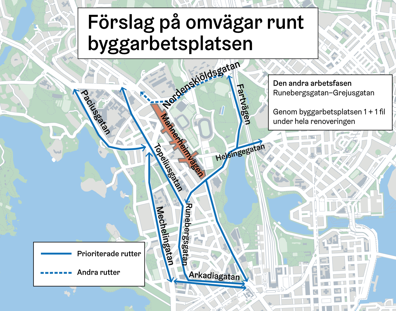 I början av september flyttas arbetena i den hittills största gaturenoveringen i Helsingfors till Bortre Tölö där renoveringsplatsen är Mannerheimvägen mellan Runebergsgatan och Grejusgatan samt en del av sidogatorna. Totalrenoveringen blir färdig i sin helhet i slutet av 2025.