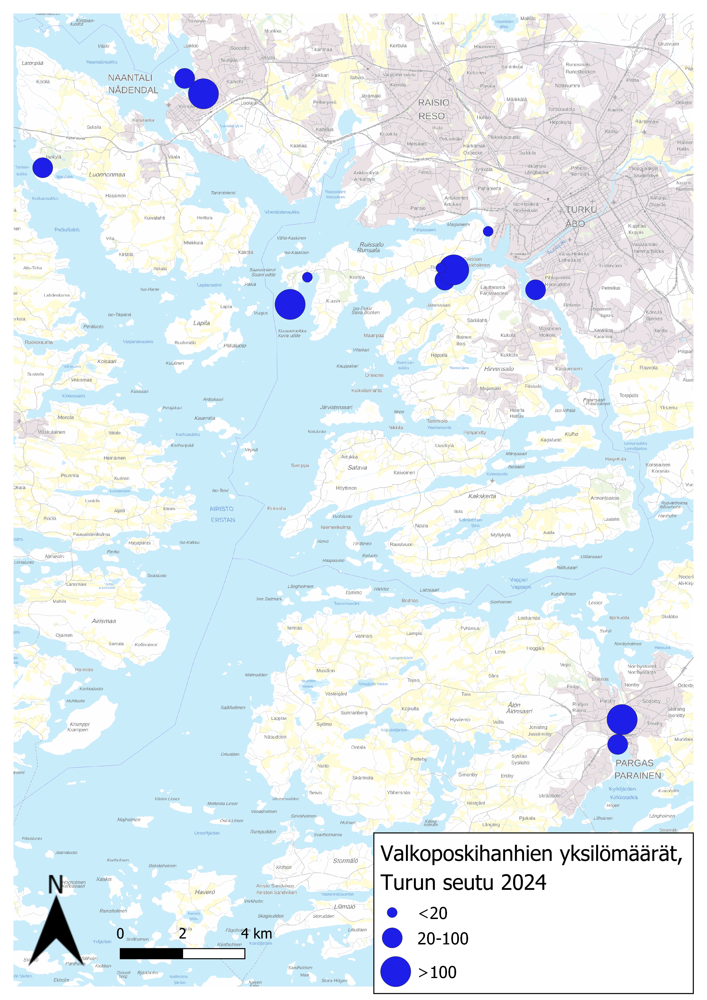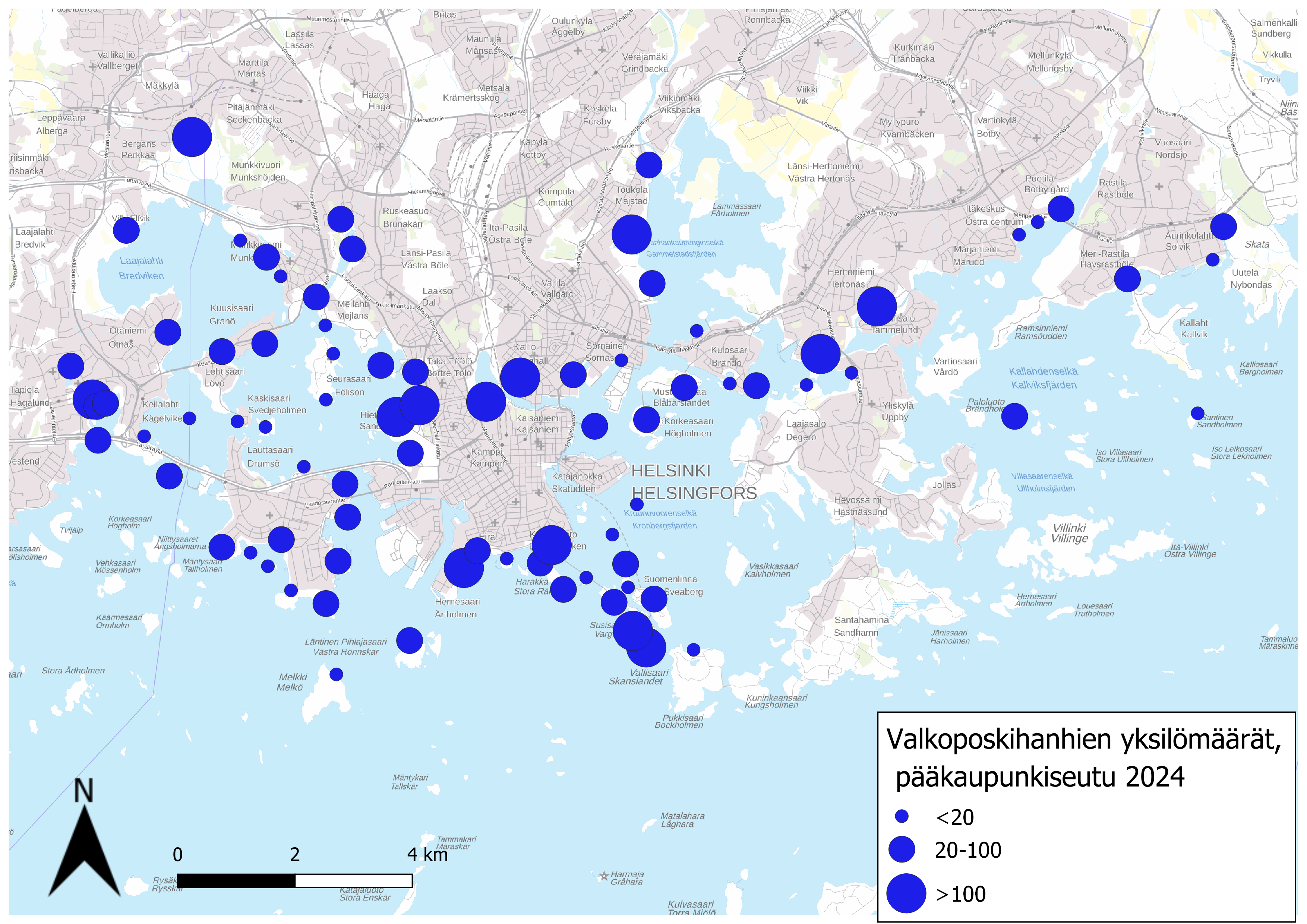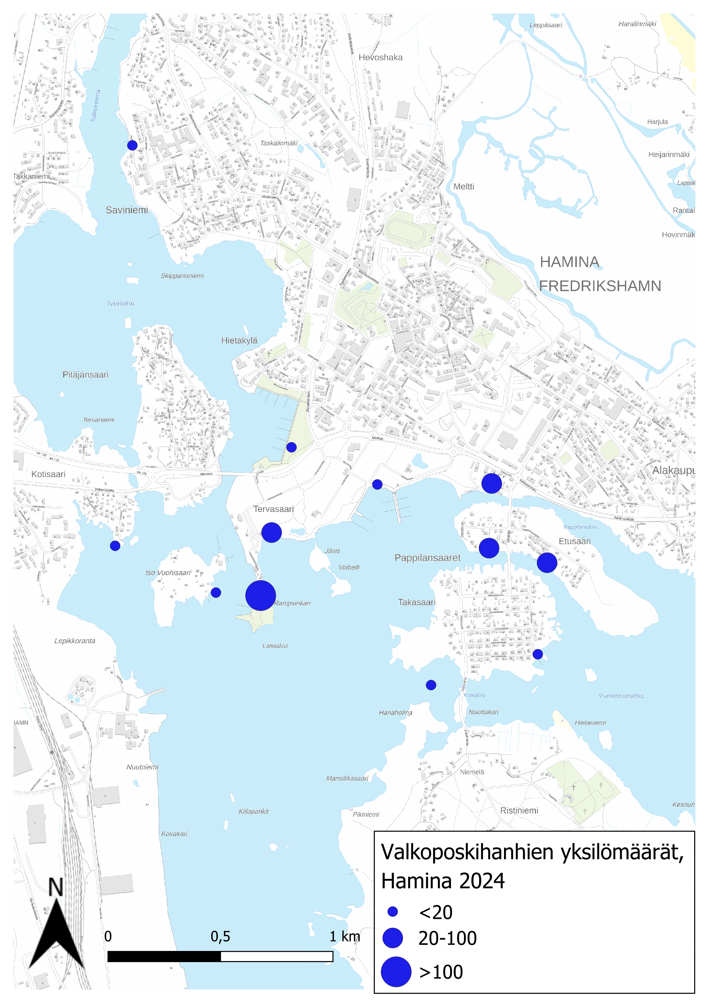 Kaupunkialueilla pesiviä valkoposkihanhia laskettiin pääkaupunkiseudun lisäksi jälleen myös Turussa, Paraisilla, Naantalissa, Kotkassa ja Haminassa sekä Lahdessa. Uutena kohteena tämän vuoden laskentoihin mukaan tuli Parikkala. Poikuelaskentoja on laajennettu alueille, joilla hanhia esiintyy runsaasti. Seurannan avulla kaupungit saavat tarkkaa tietoa hanhien esiintymisestä ja kantojen kehityksestä.