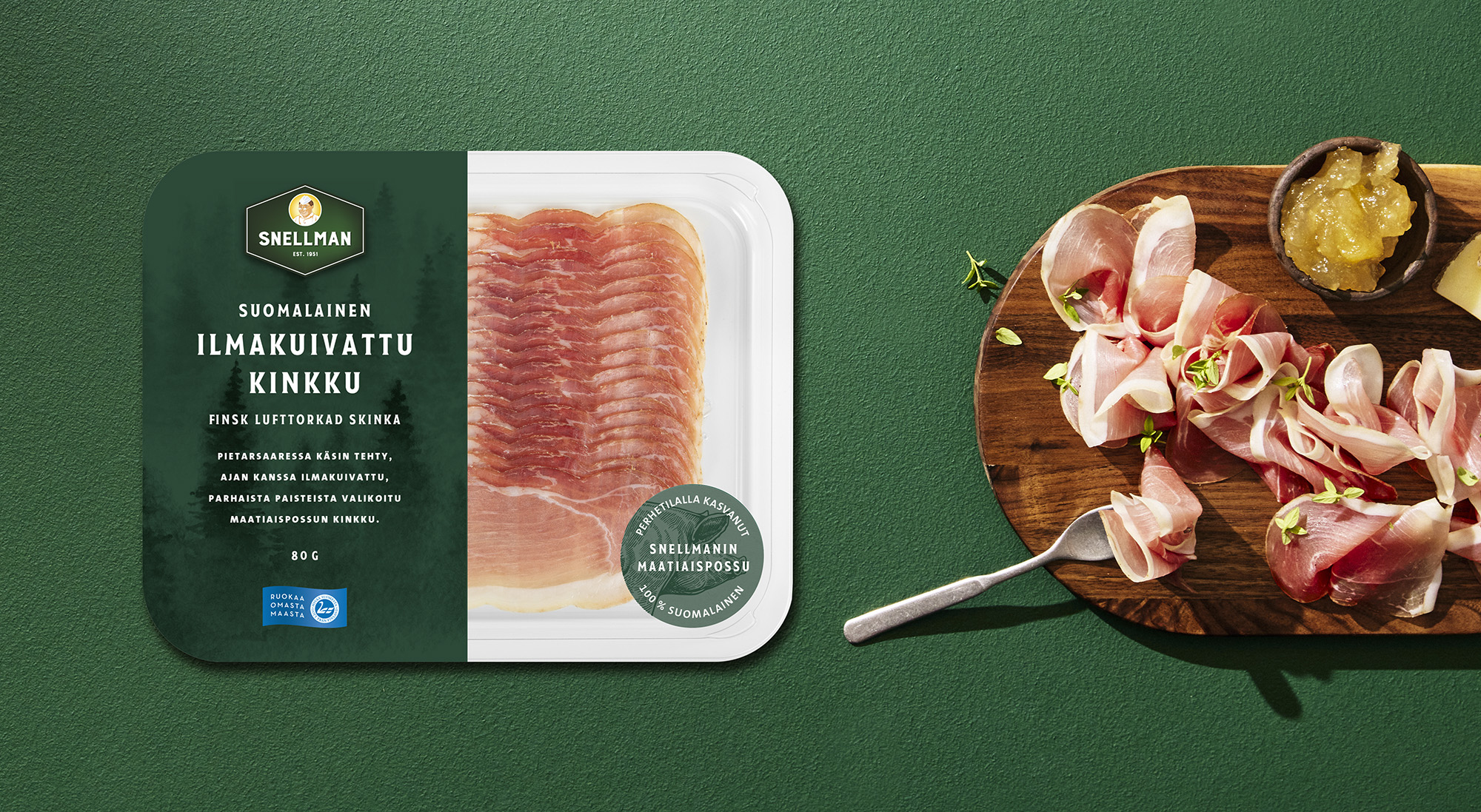 Snellman lyfter in den finska lufttorkade skinkan i en produktkategori, där ingen inhemsk aktör tidigare gjort stora satsningar – måhända för att den lufttorkade skinkan ses som en både svår och utmanande produkt inom branschen.
