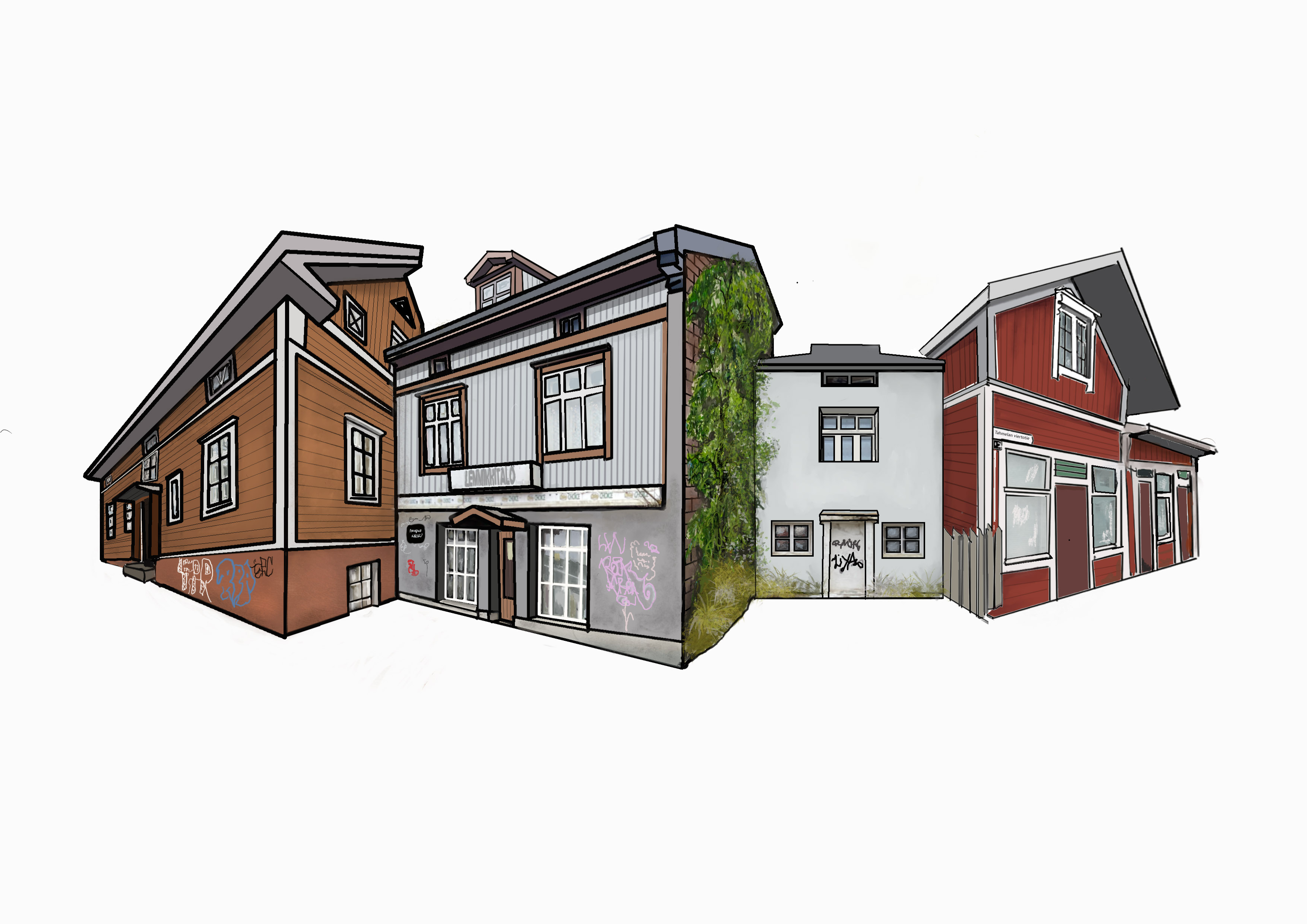 Teoksessa korostuvat paikallisuus ja yhteisöllisyys, pispalalaisuus ja siihen liittyvät erityispiirteet. Teoksessa on kuvattu neljä pispalalaista rakennusta, jotka taiteilija on jäljentänyt teokseensa jokaista yksityiskohtaa myöten. Yppärilän työskentelytapaan kuuluu kaduilla kulkeminen ja valokuvaaminen. Intuitiivisesti Mäkikadulta, Pispalan valtatieltä, Tahmelan viertotieltä ja Rinnekadulta valitut rakennukset huokuvat pispalalaista henkeä ja rakennusperintöä. Kuka tahansa Pispalan kaduilla kulkeva voi tunnistaa teoksen rakennukset.