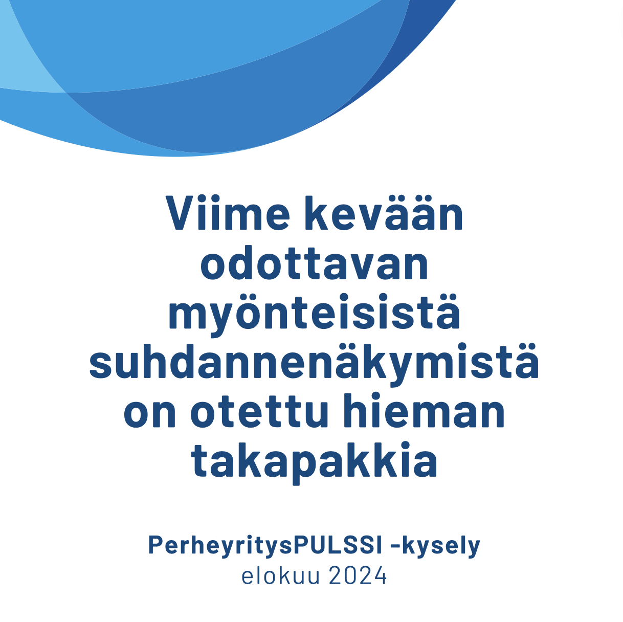 PerheyritysPULSSI on Perheyritysten liiton neljä kertaa vuodessa jäsenilleen tekemä kysely. Suurin osa vastaajista on omistajia yrityksissä, joiden liikevaihto on 10–50 miljoonaa euroa ja jotka työllistävät 10–250 henkeä. Vastaajat ovat tyypillisesti omistajayrittäjiä teollisuuden, palveluiden ja kaupan aloilta. Kyselyyn vastasi 108 perheyritysten edustajaa 20. - 25.8.2024 välisenä aikana.