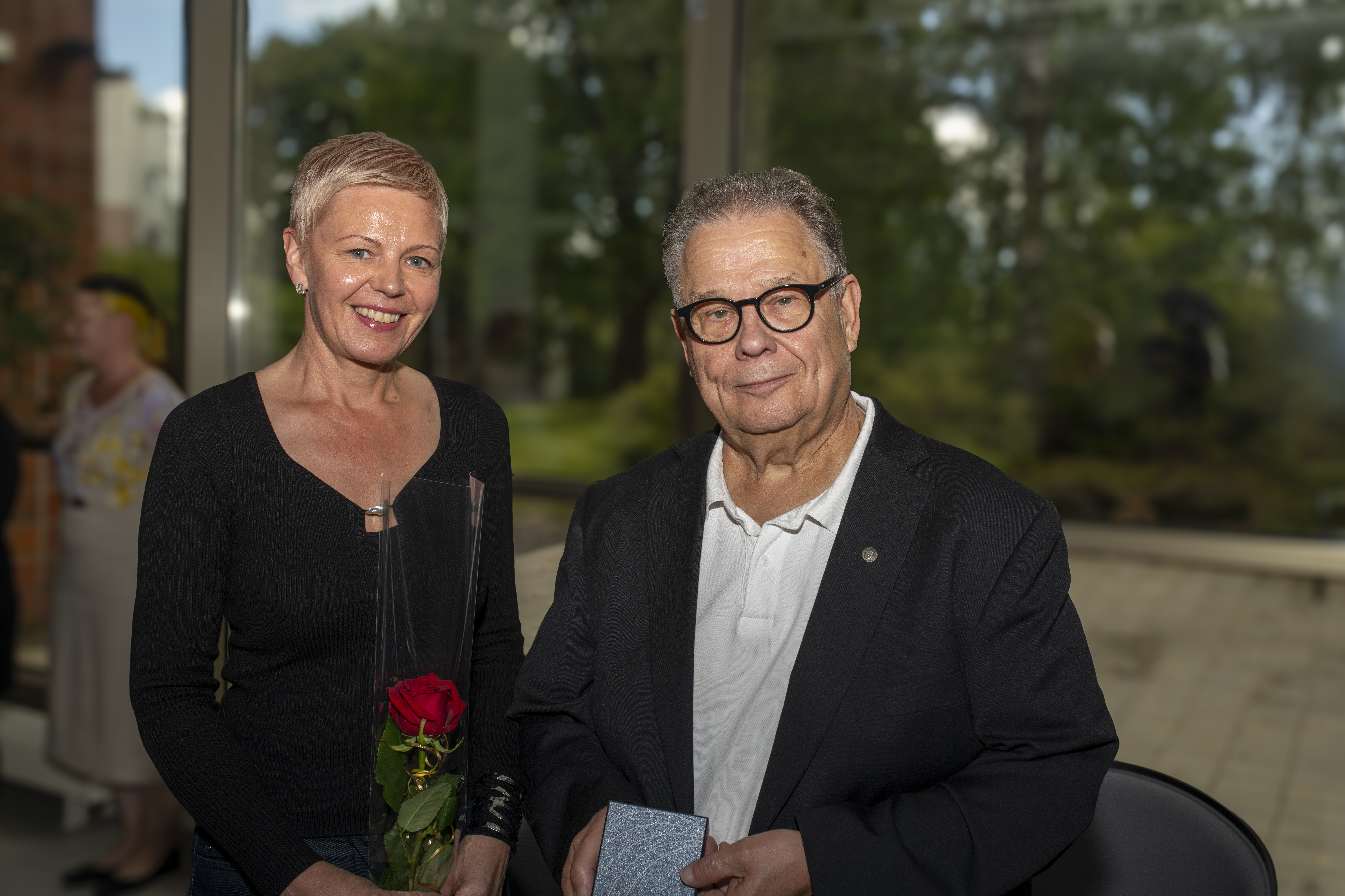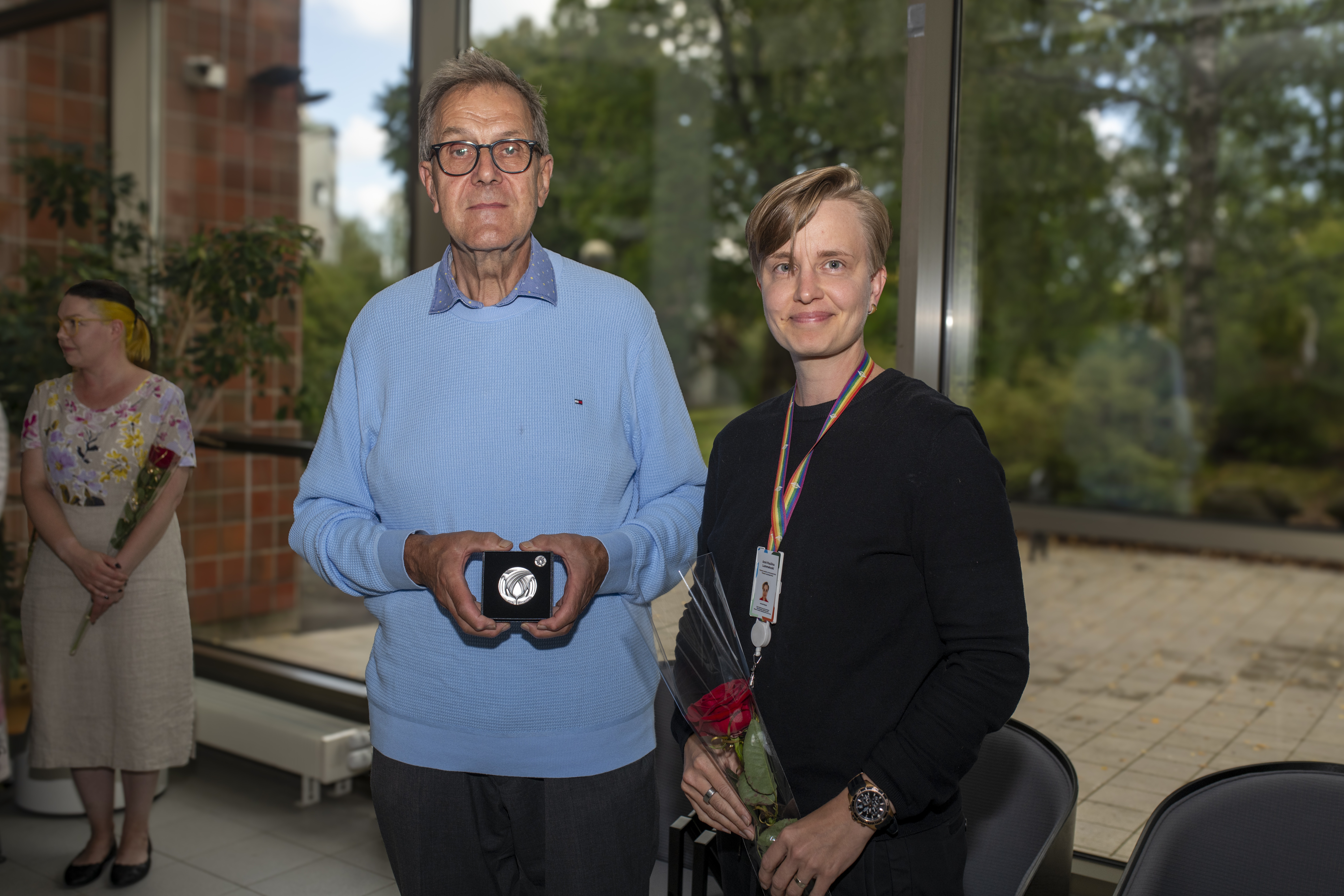 Kultaiset Pro diaconia -ansiomitalit myönnettiin Anne-Maria Laukkariselle, joka jäi syyskuun alussa eläkkeelle Espoon seurakuntayhtymän kasvatuksen asiantuntijan virasta, ja diakoni Jyrki Myllärniemelle, joka on toiminut Edistian kehittämispäällikkönä.