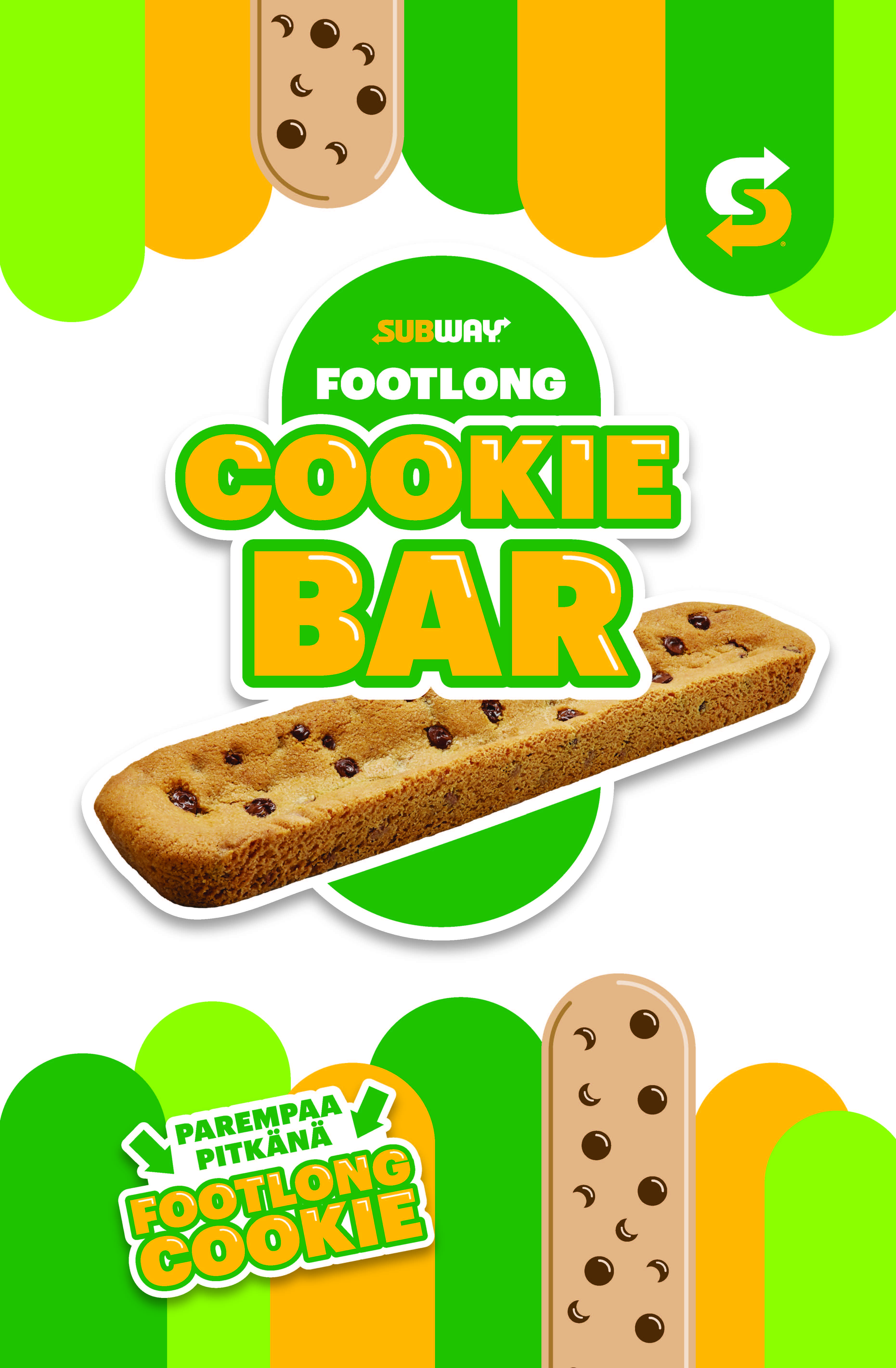 Subway Footlong Cookie Barissa kaikki pääsevät maistamaan Footlong Cookieita ilmaiseksi. Kokonaisen keksin voi ostaa mukaan kolmen euron erikoishintaan** Subway Footlong Cookie Barista koko viikonlopun ajan.