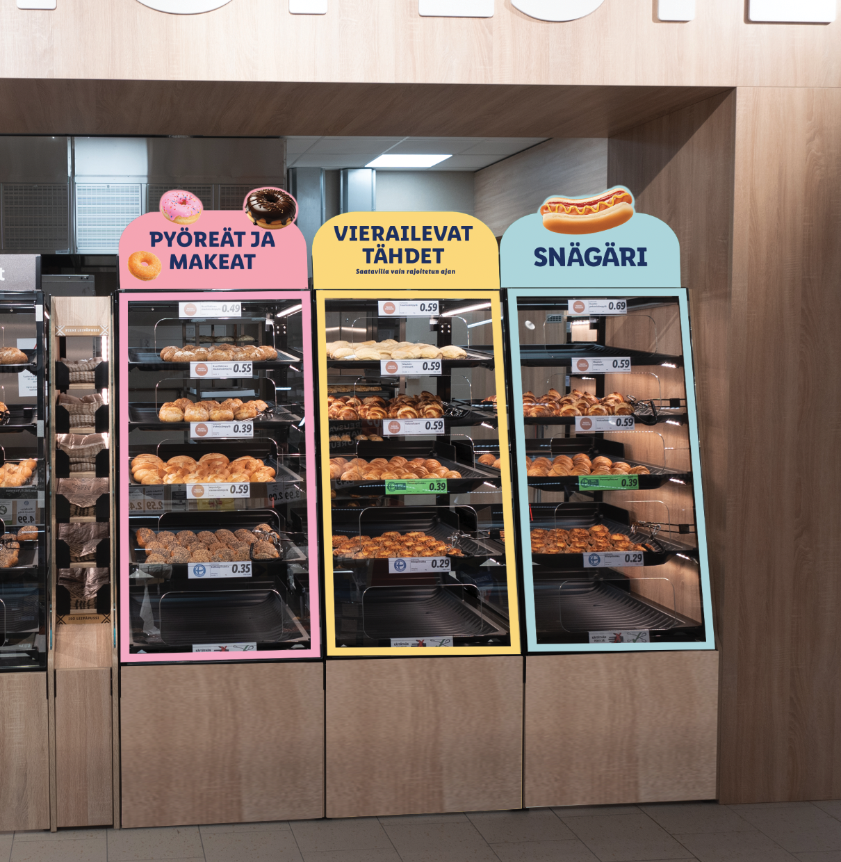 Kaikkien Lidl-myymälöiden paistopisteet on vastikään uudistettu. Syyskuun alusta asiakasta ovat tervehtineet pastellinsävyiset vitriinit, jotka on jaettu kolmeen eri kategoriaan. Snägäri tarjoilee street food -tyylisiä pikkusuolaisia kuten pizzaa ja hodareita, pyöreät ja makeat -hyllystä taas löytyvät donitsit ja munkit makean ystäville. Vierailevat tähdet -osio taas notkuu kausittain vaihtuvia erä- ja sesonkituotteita.