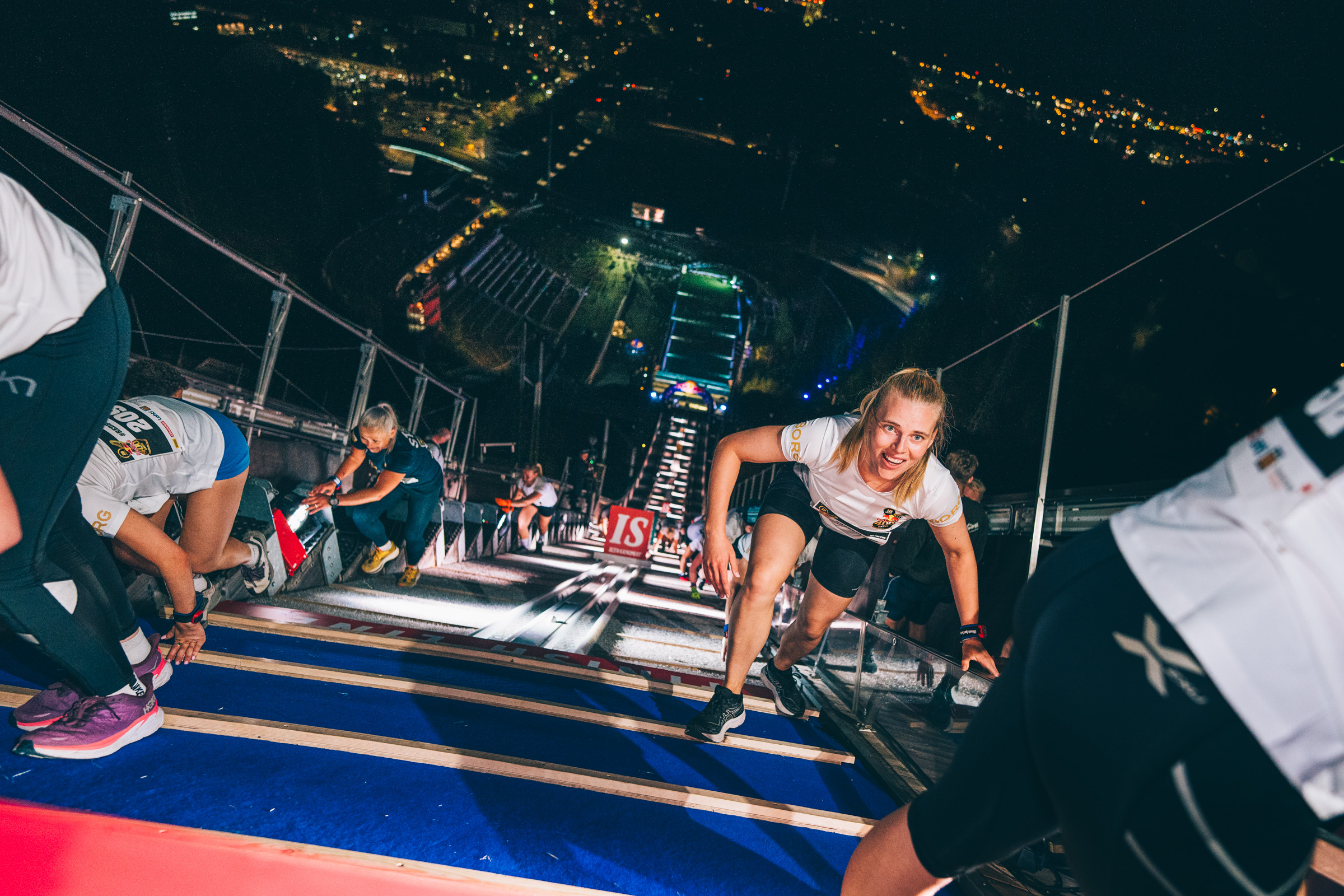 Yksilösarjojen lisäksi Lahdessa kilpailtiin miesten ja naisten 4x100m -viestit Lahden betonin huipulle asti.