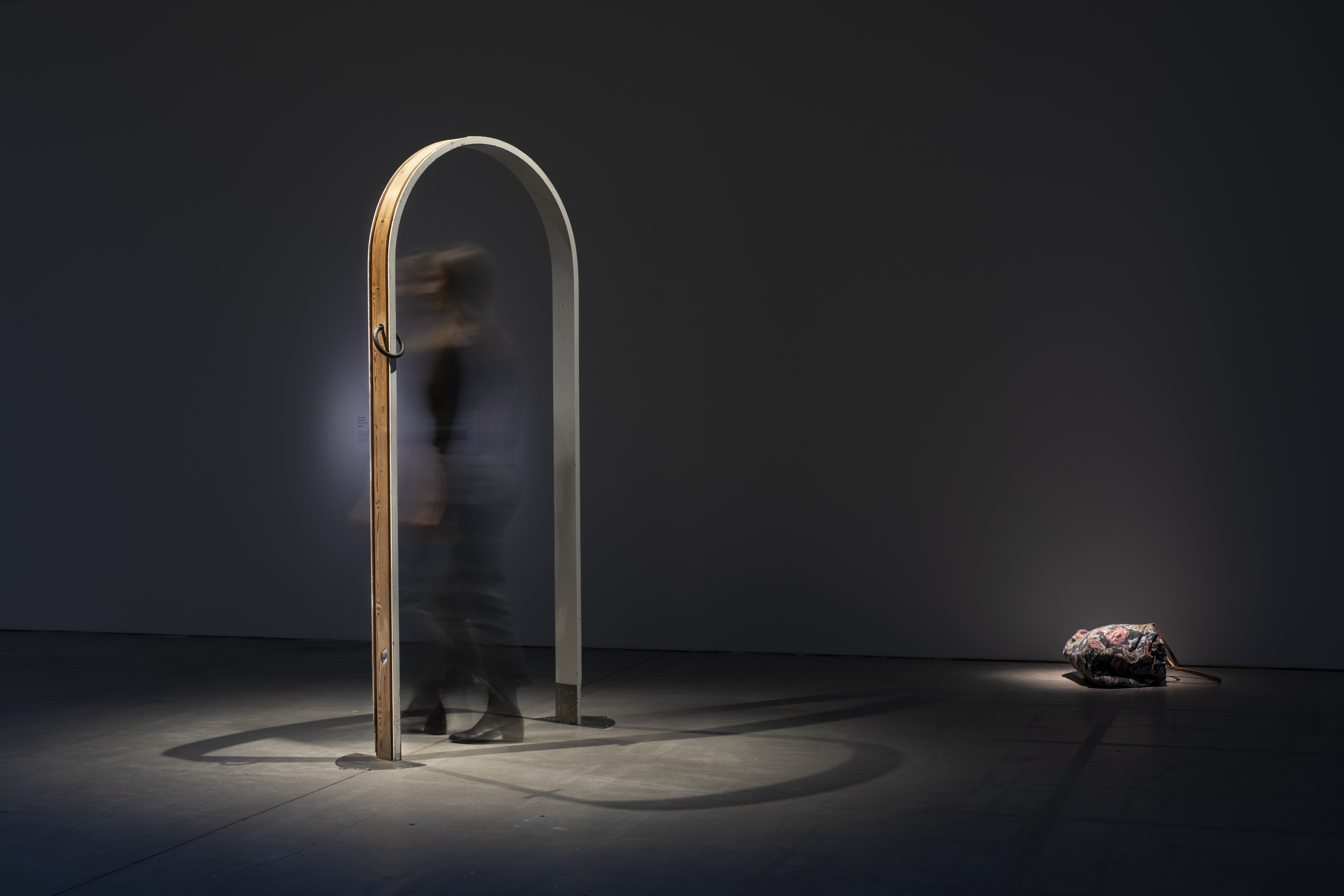 The video installation will be presented in HAM’s great arched hall alongside performance-like sculptures comprising ready-made objects and motorized movement. The figures in the sculptures consist of strangely mixed elements and their fluid identity is of indeterminate gender. They embrace multiplicity instead of binaries and absolutes. Recurring elements such as bags and gateways evoke the idea of a voyage or an expedition to new frontiers.