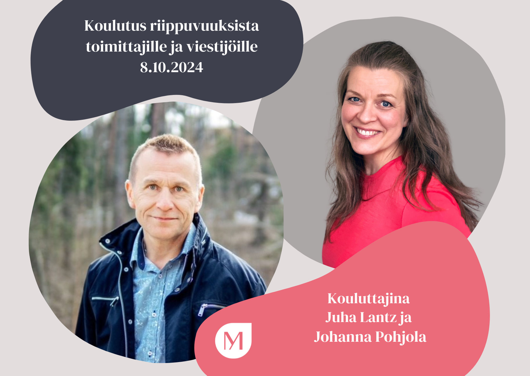 Mitä jokaisen toimittajan tai viestijän on tärkeää tietää riippuvuuksista? Missä media menee helposti mönkään ja luo jopa virheellisiä mielikuvia, kun se kertoo päihteiden ongelmakäytöstä? Miten välttää joutumasta riippuvaisen haastateltavan huiputtamaksi? Tervetuloa hiomaan tiedot, käsitteet ja perusymmärrys kuntoon!