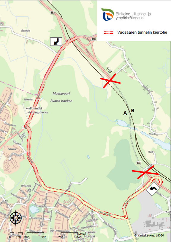 Helsingissä Vuosaaren satamatiellä (Mt 103) sijaitseva Vuosaaren tunneli suljetaan tunnelin pesua ja huoltotöitä varten 25.–27.9.2024 klo 22.00–05.00.
