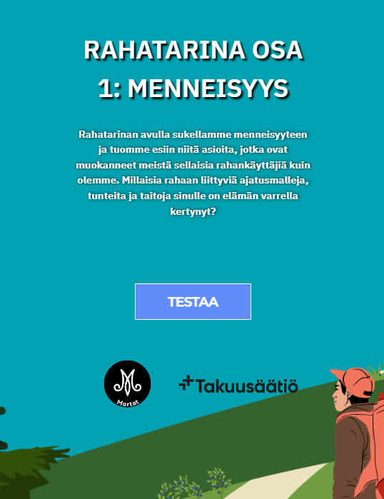 - Menneisyys: Testaa, millaisia rahaan liittyviä oppeja pelaaja on saanut elämänsä varrella.