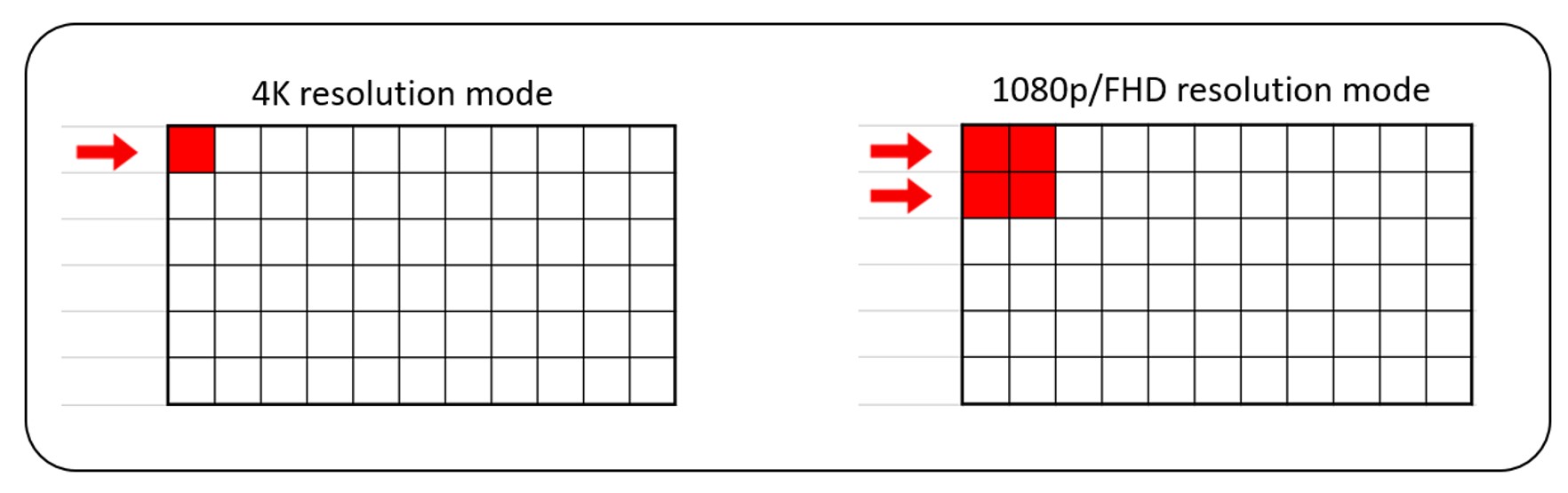 AW2725QF-pelinäytön teknologian ansiosta käyttäjät voivat nauttia joko 180 Hz:n tilan useamman pikselin 4K-resoluutiosta tai Full HD -resoluutiolla varustetun 360 Hz:n tilan korkeammasta virkistystaajuudesta. Sisäänrakennetusta 4K-tilasta Full HD -tilaan vaihdettaessa neljä pikseliä yhdistyy yhdeksi, mikä kaksinkertaistaa näytön virkistystaajuuden 360 Hz:iin.