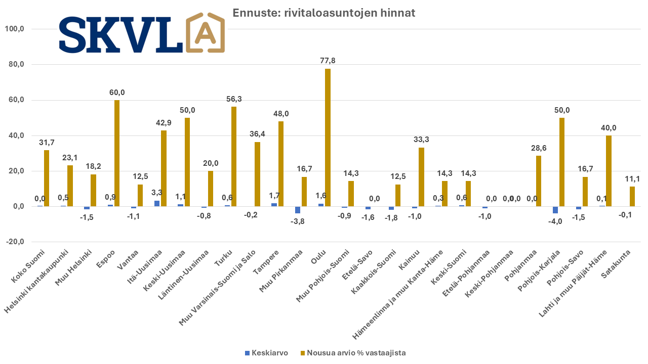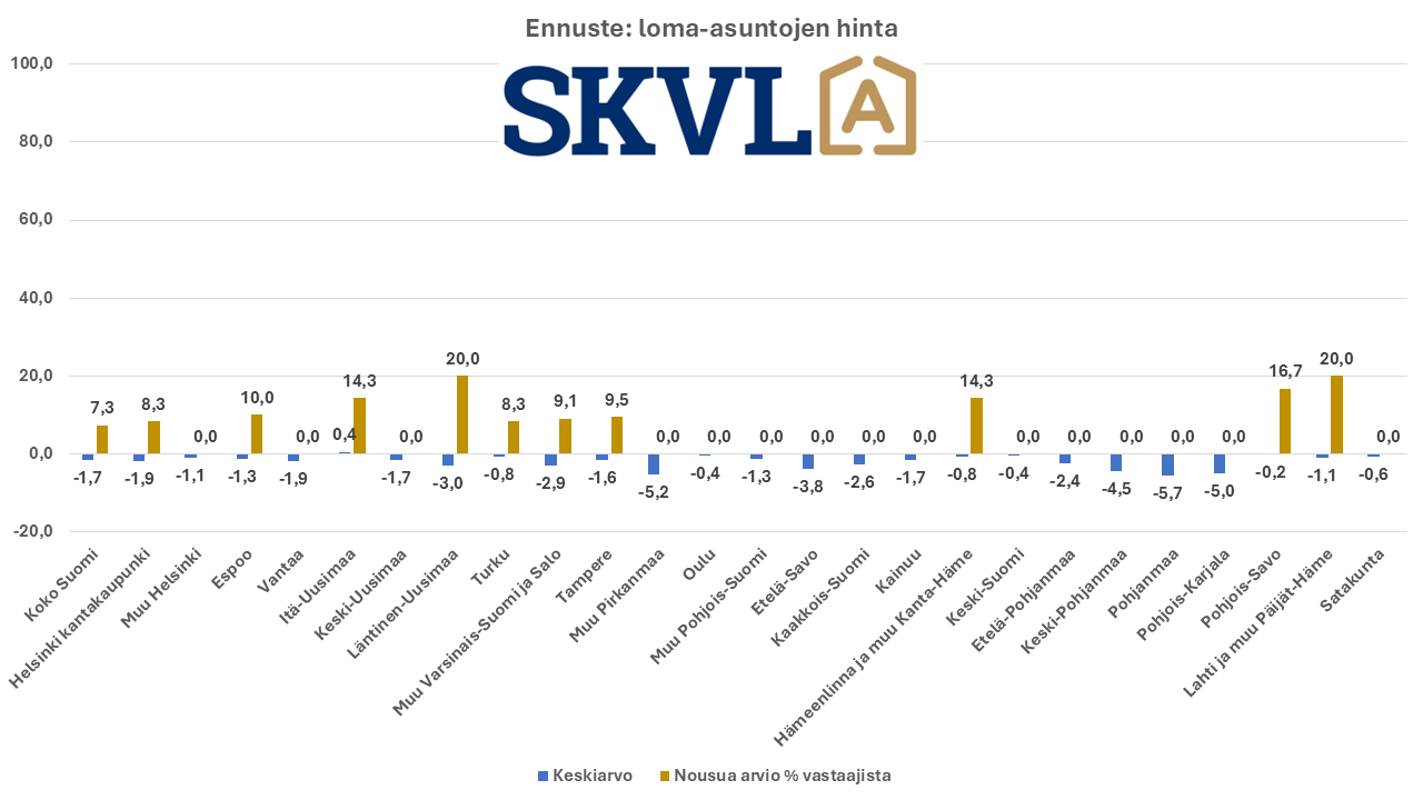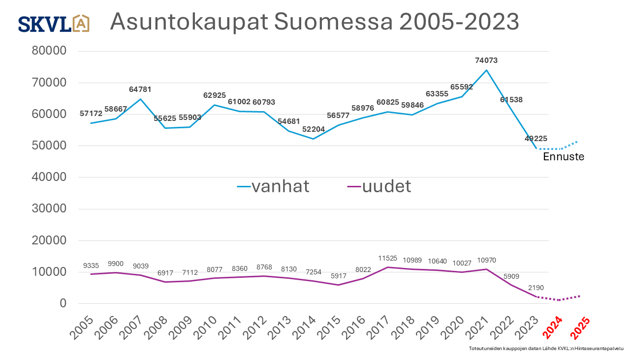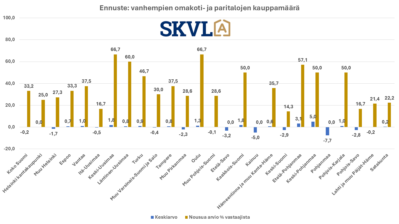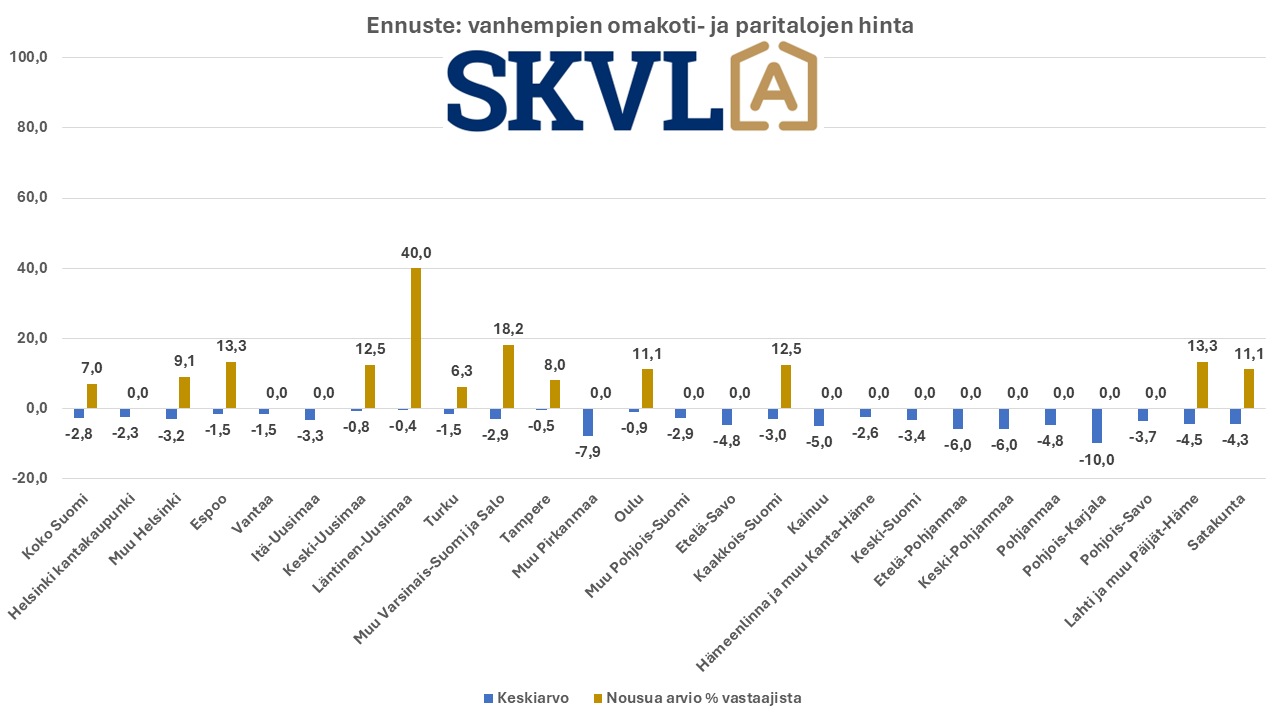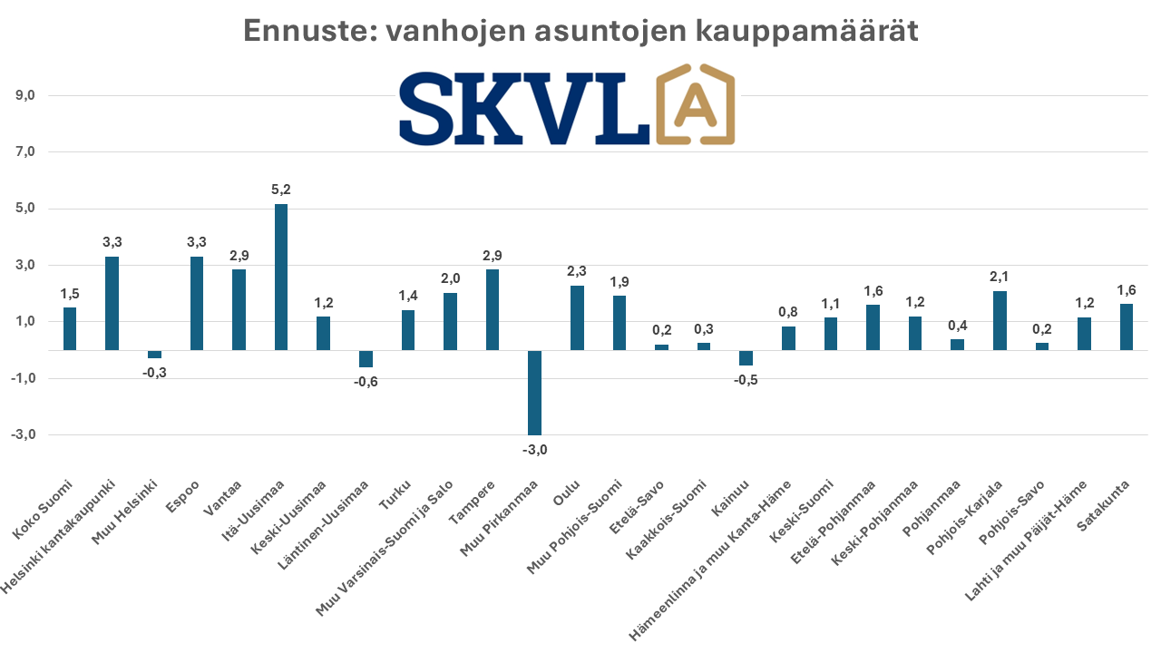 SKVL asuntomarkkinaennuste: Vanhojen asuntojen kaupan vilkastuminen jatkuu pikkuhiljaa – hintoihin ei odotettavissa muutoksia – laskevat korot auttavat – pankit hidastavat paljon