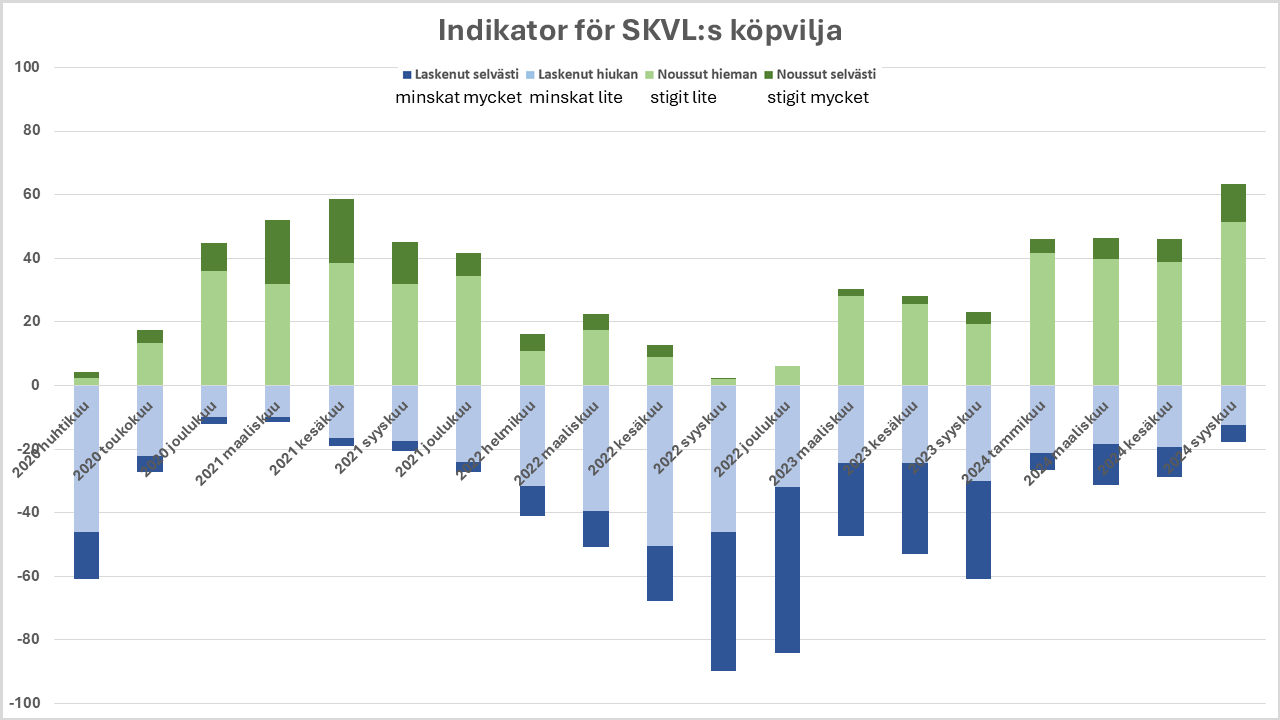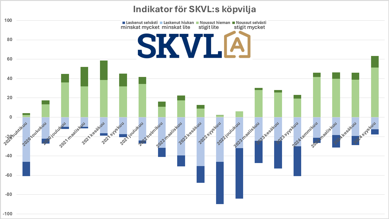Enligt SKVL:s indikator för köpvilja är bostadssäljarna nu motiverade. Köparnas önskan att fatta ett köpbeslut har ökat avsevärt. Ur säljarnas synvinkel har man i huvudsak förstått den lägre prisnivån, och nu börjar det hända saker på marknaden när köparna säljer sina egna bostäder.