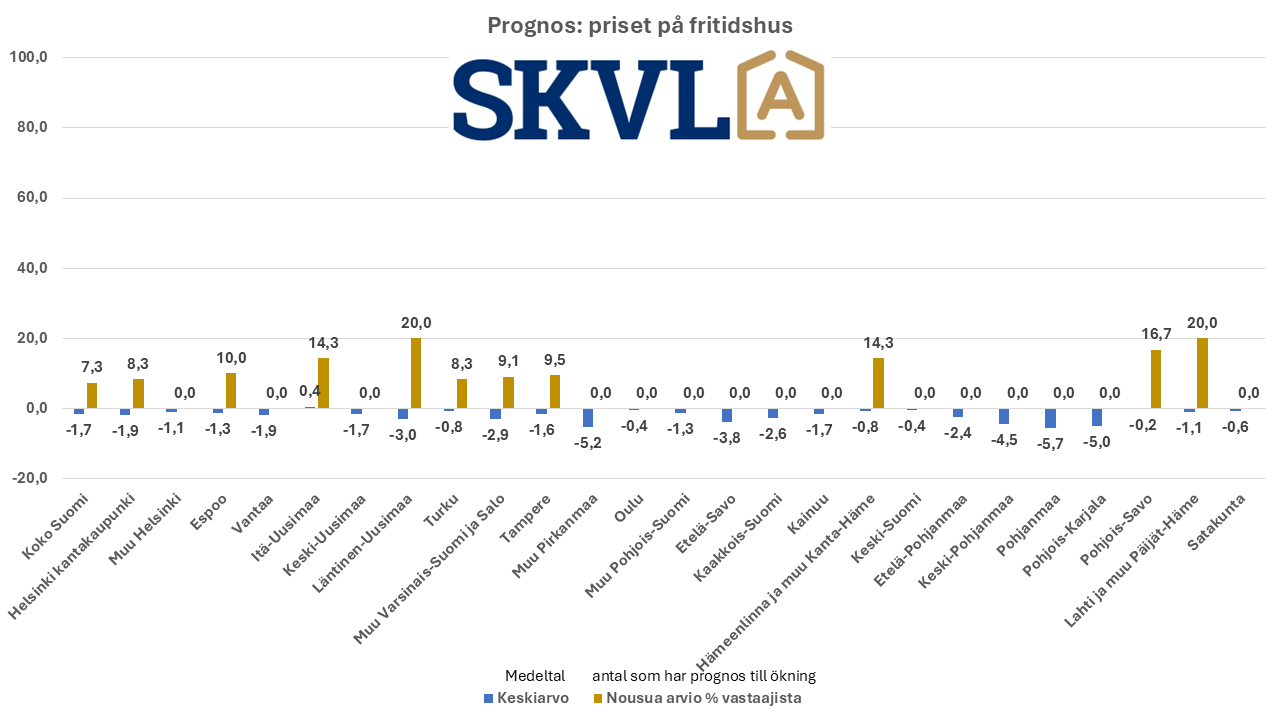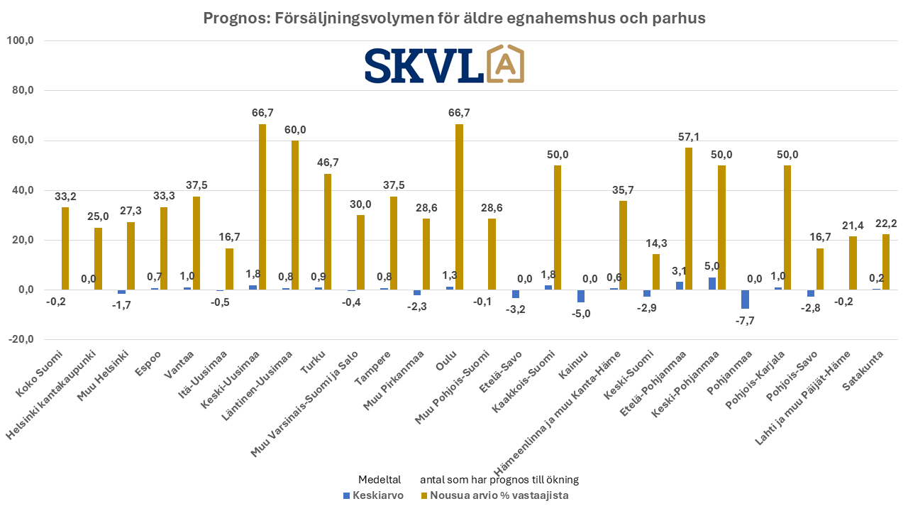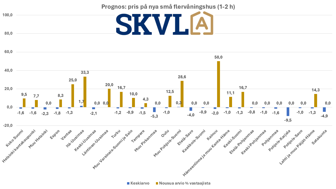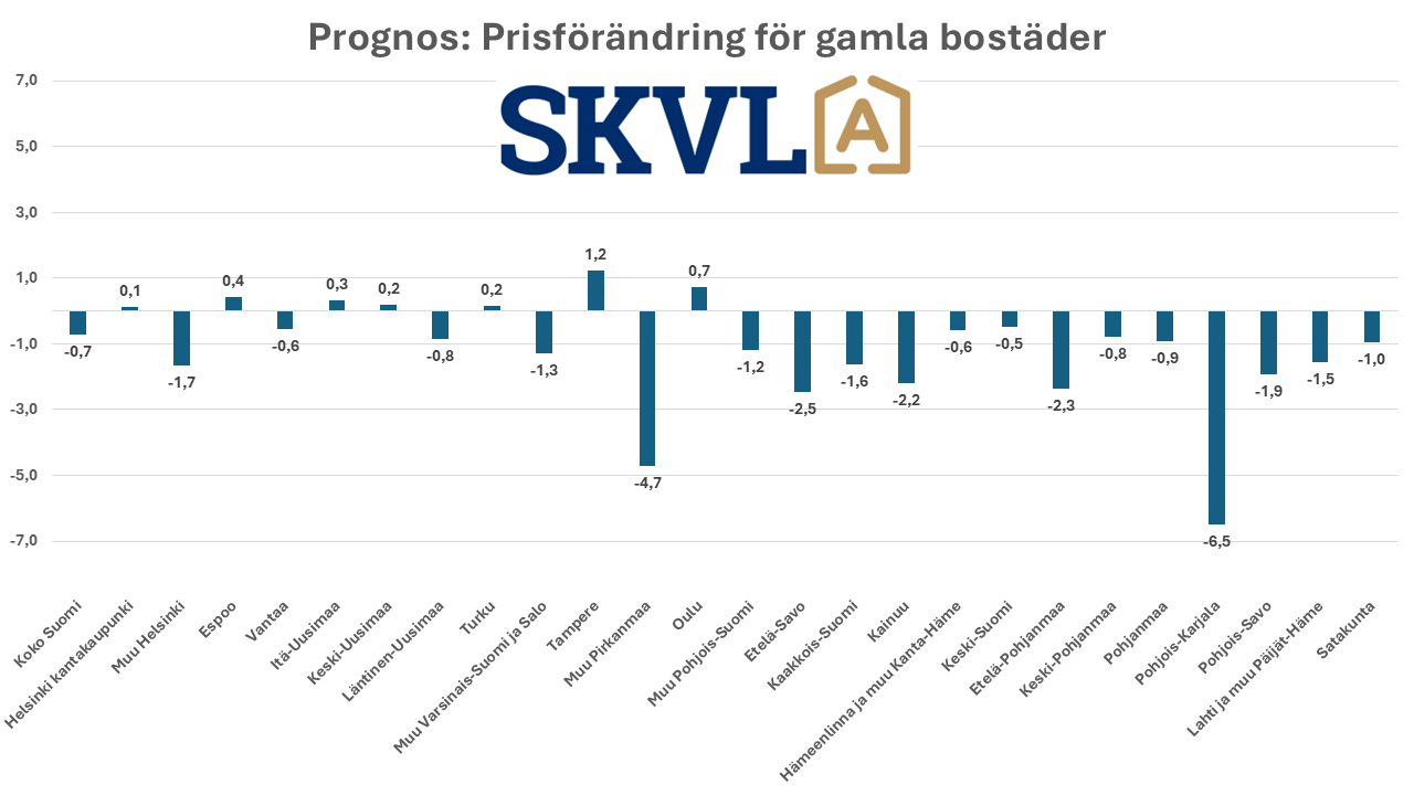 - FIN: SKVL asuntomarkkinaennuste: Vanhojen asuntojen kaupan vilkastuminen jatkuu pikkuhiljaa – hintoihin ei odotettavissa muutoksia – laskevat korot auttavat – pankit hidastavat paljon