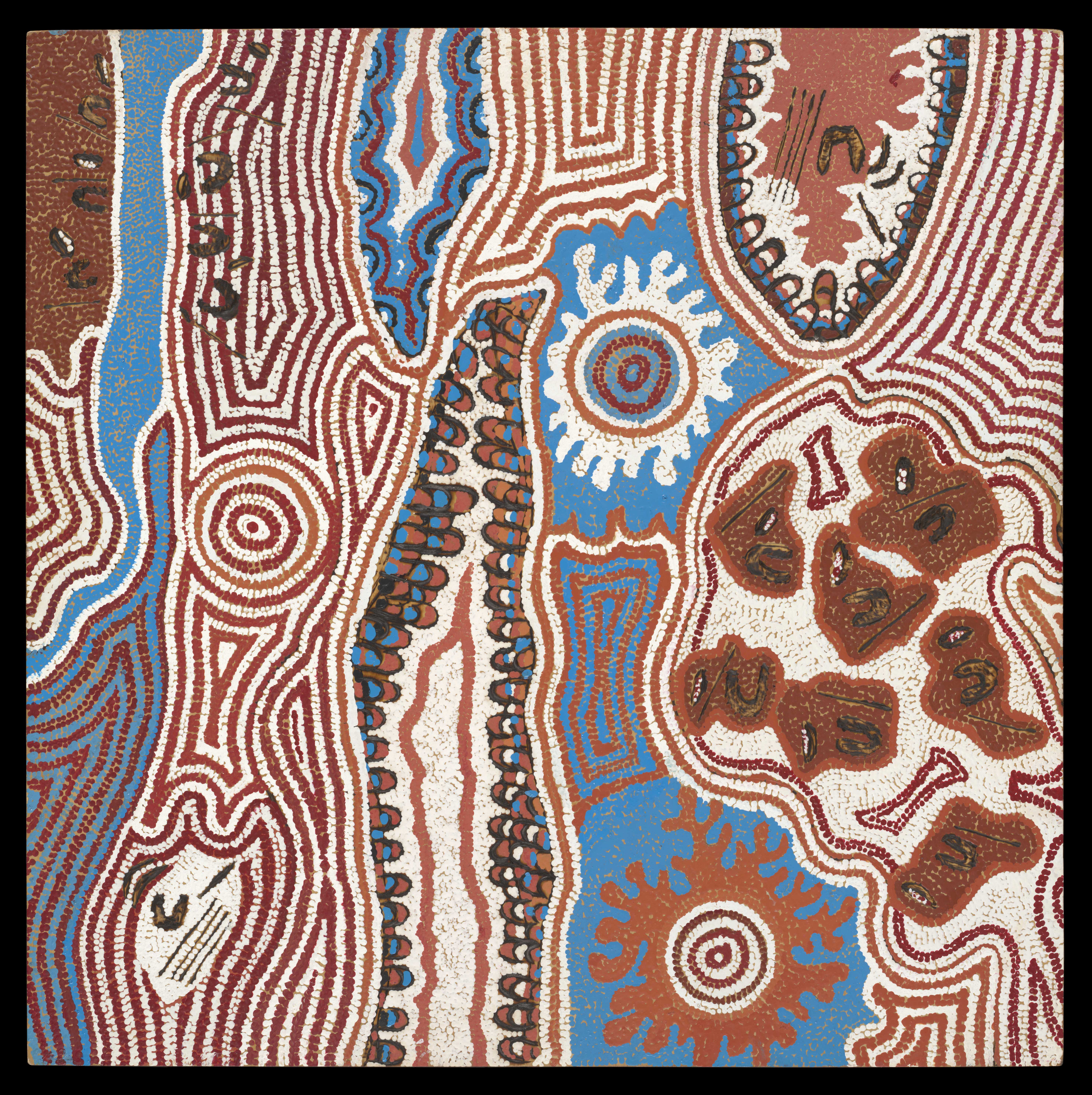 Perinteiset maankäyttöalueiden rajat määräytyvät uniajan luomiskertomusten eli laululinjojen mukaan. Laululinjat tunnustettiin Australian liittovaltion tuomioistuimessa alkuperäiskansojen laeiksi, kun tässä näyttelyssä mukana oleva Ngaanyatjarra-kansa vuonna 2005 vaati menestyksekkäästi yli 180 000 neliökilometrin suuruista aluetta itselleen. Aboriginaalit eivät kuitenkaan katso omistavansa maata, vaan he toimivat oman alueensa holhoojina.