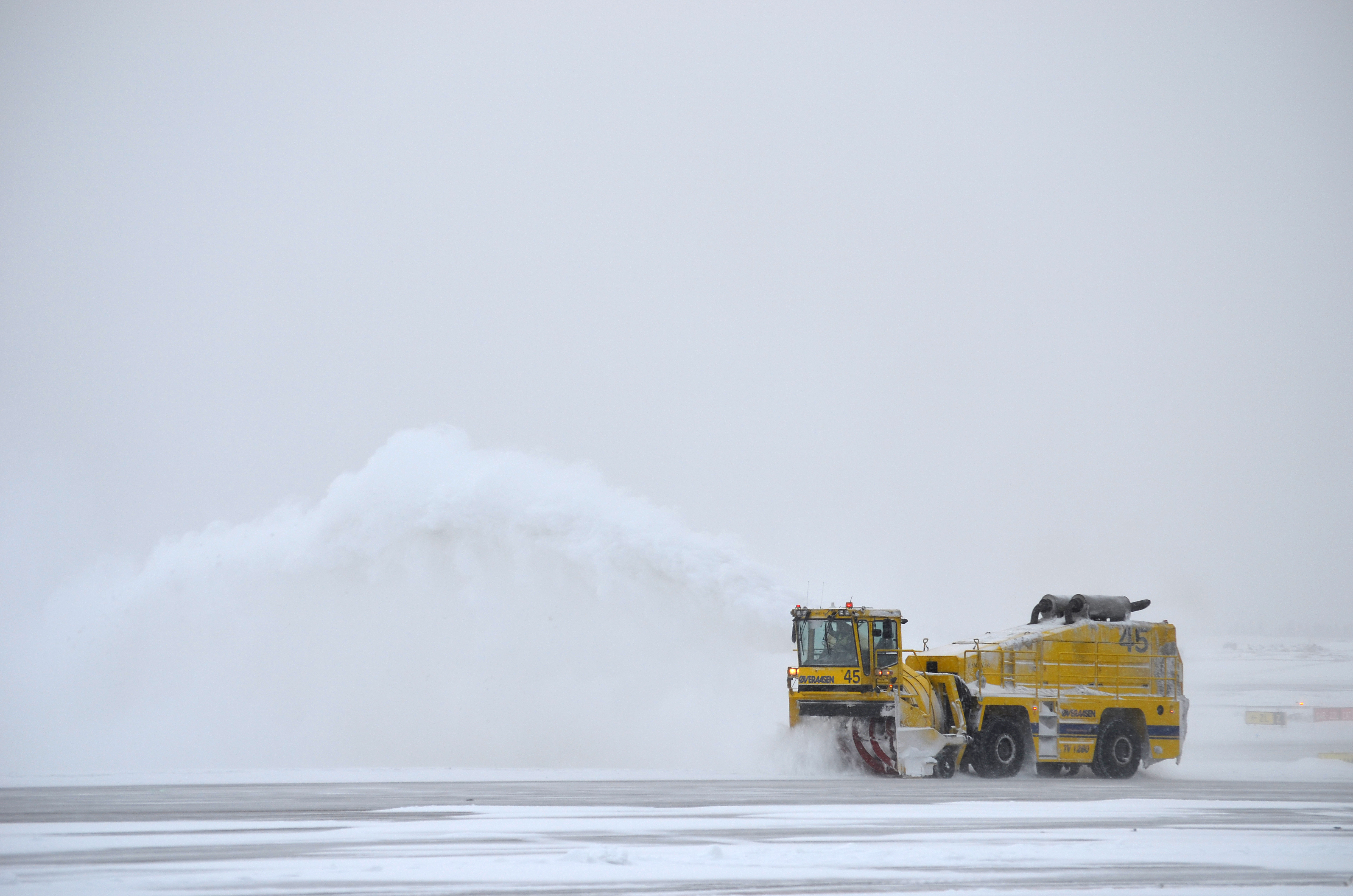 Runway maintenance with snow removal machines is carried out in groups of approximately 15 machines, with each driver having a predefined task.
