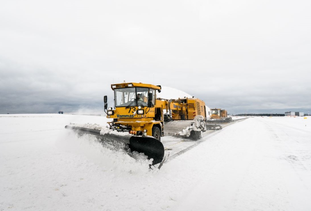 In addition to the runways, snow removal operations in the winter are also performed in the apron area, aircraft parking and de-icing areas, the airport's service roads and ground traffic routes. The total size of the area for snow removal operations at Helsinki Airport is approximately 350 hectares.