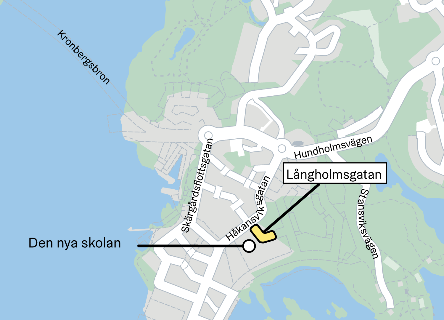 Staden främjar byggandet av en ny skola på Kronbergsstranden. Byggandet av Långholmsgatan möjliggör byggandet av Kronbergsstrandens nya skola på den intilliggande tomten.