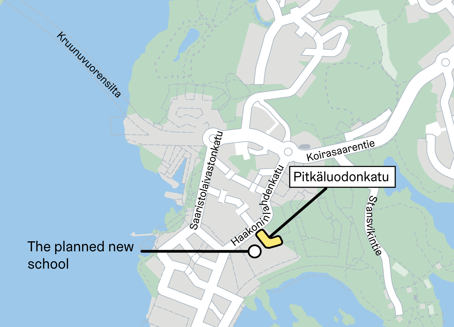 The city is advancing the construction of the new Kruunuvuorenranta school. The construction of Pitkäluodonkatu makes it possible to build a new school on the adjacent plot at Kruunuvuorenranta.