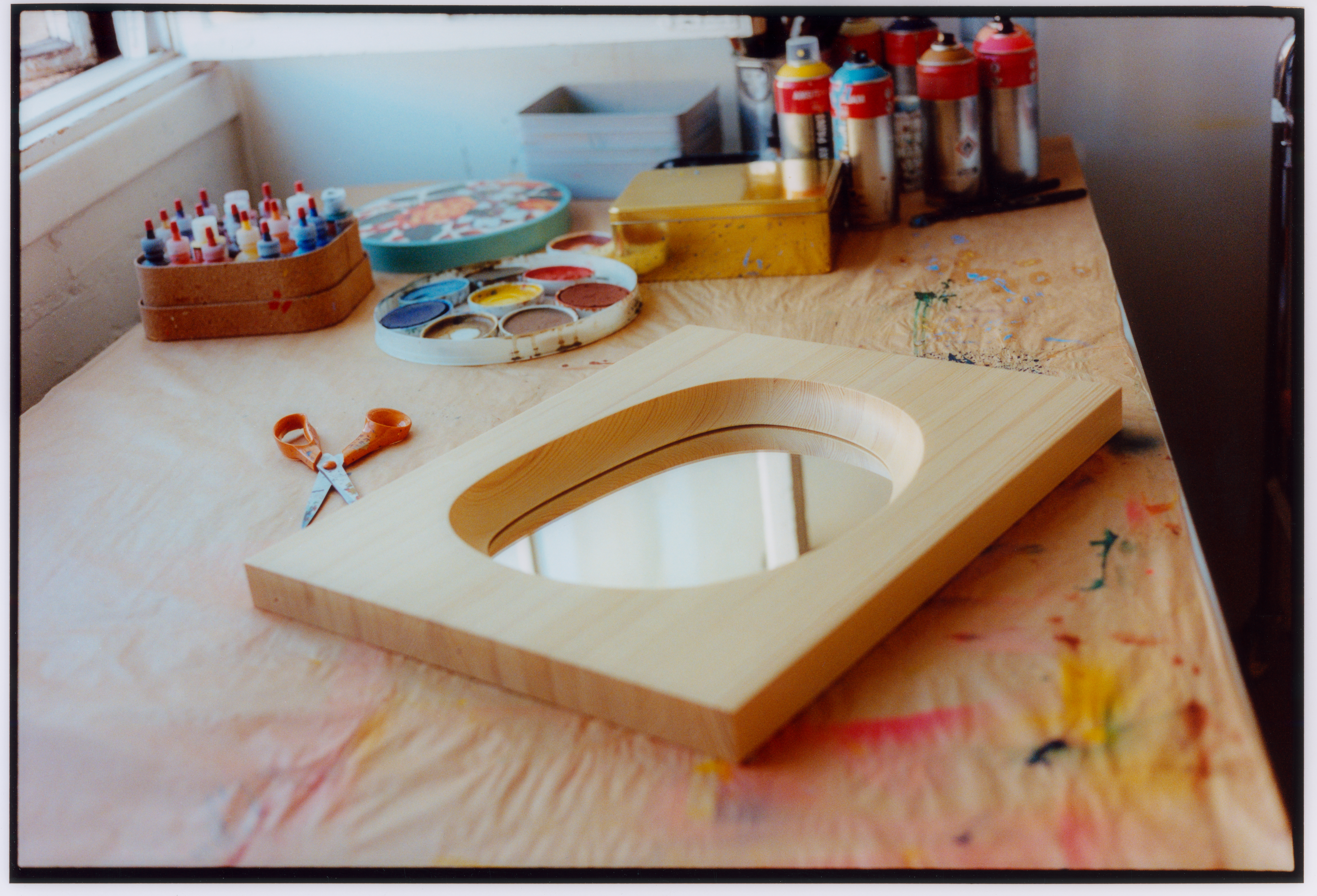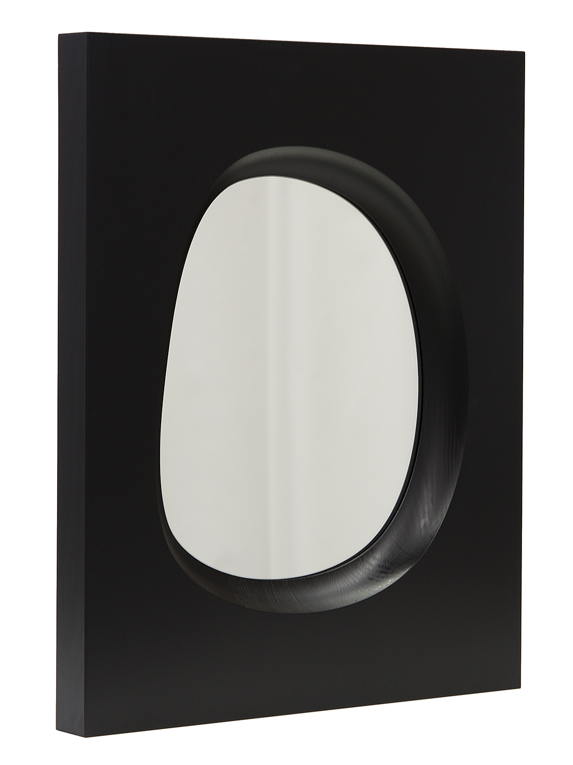 Ajatus peilistä lähti vastakohdasta perinteiselle peilille. “Tavallisesti peililasille tehdään kehys ja aloitin pohtimalla, miltä näyttäisi peili, jossa kehys olisi pääosassa.” Suunnittelija Reeta Laine kertoo. Reetaa kiinnosti erityisesti orgaanisen muodon yhdistäminen ryhdikkääseen kehykseen. Tämä oli mahdollista, kun suorakulmaiseen puuaihioon kaiverrettiin orgaaninen muoto.